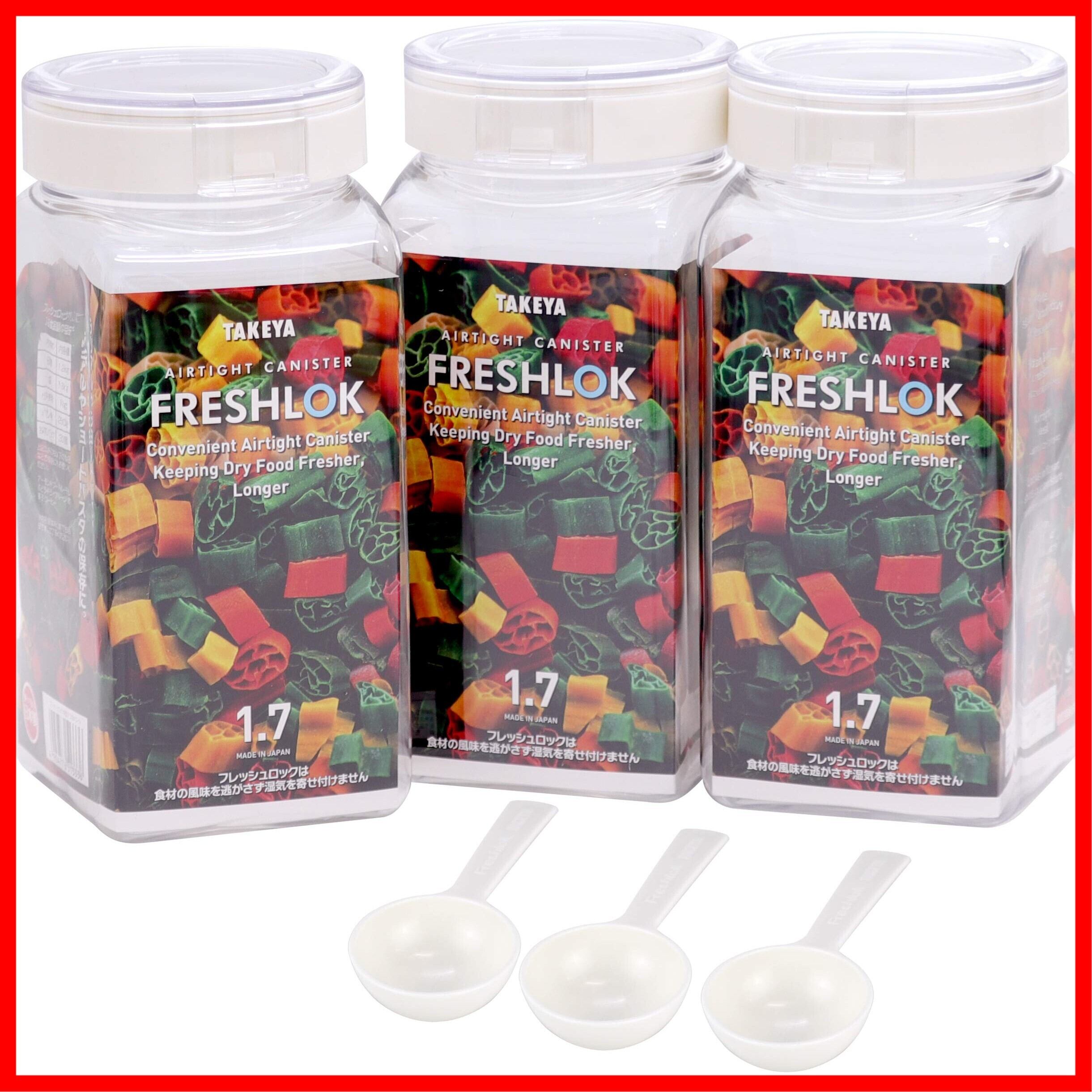 タケヤ公式 保存容器 3個セット 角型 1.7L 1700ml スプーン付き FRESHLOK 高気密性 密閉 密封 冷蔵庫 プロテイン スパイス 調味料 小麦粉 片栗粉 パン粉 ナッツ お菓子 TAKEYA フレッシュロック ホワイト