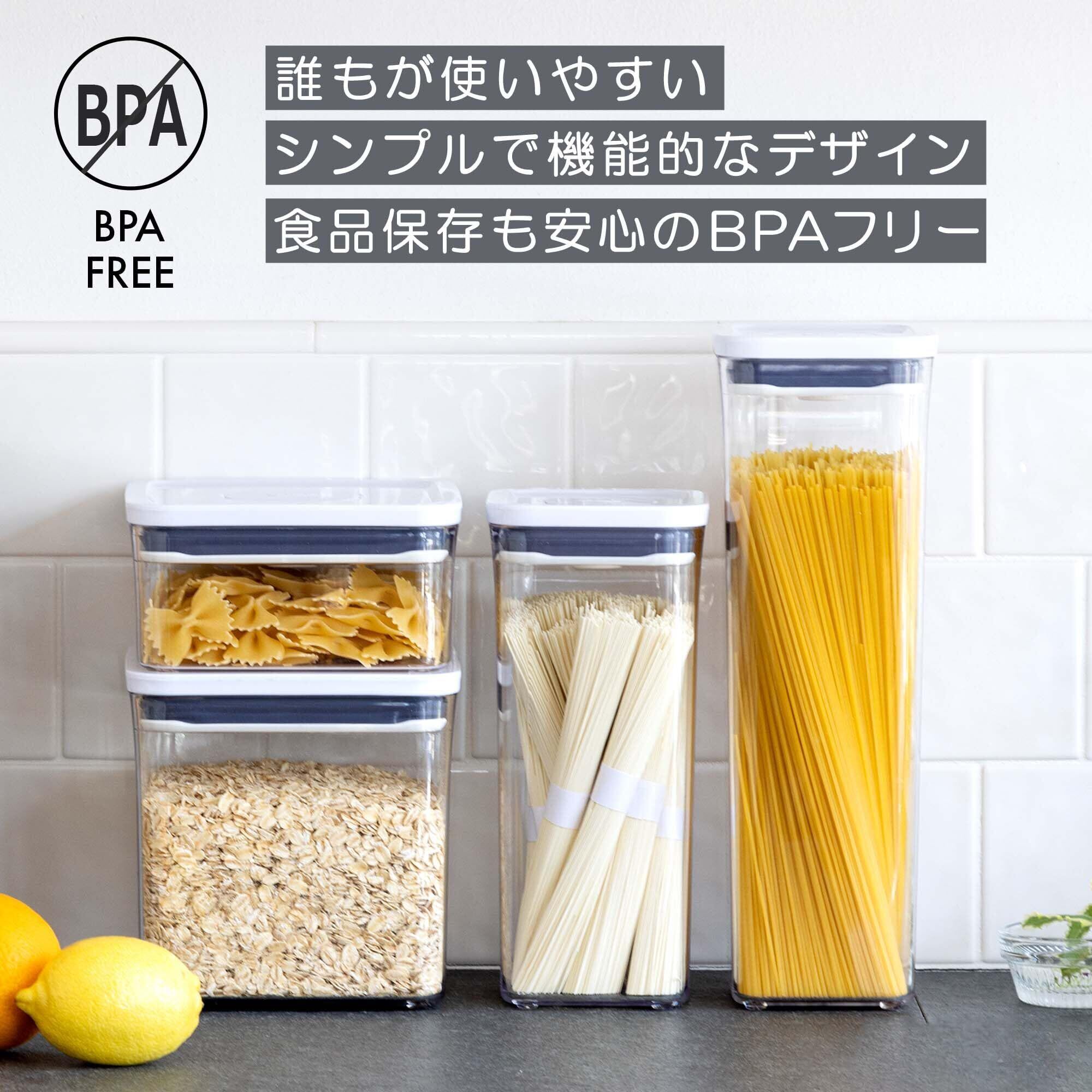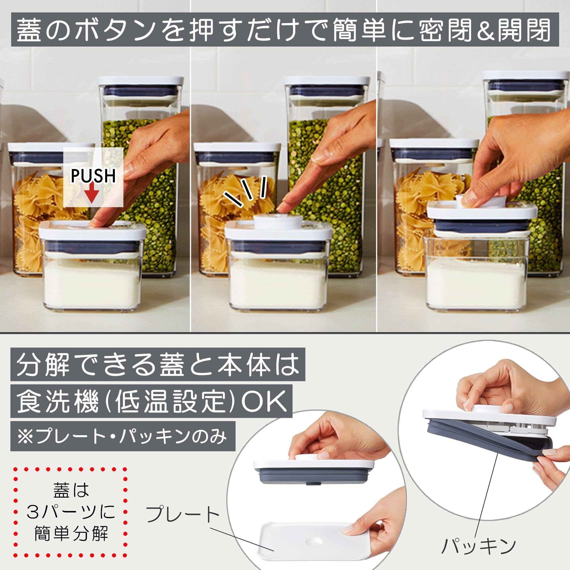 OXO ポップコンテナは、片手でボタンをプッシュするだけで簡単に開閉できる乾燥食品用 保存容器