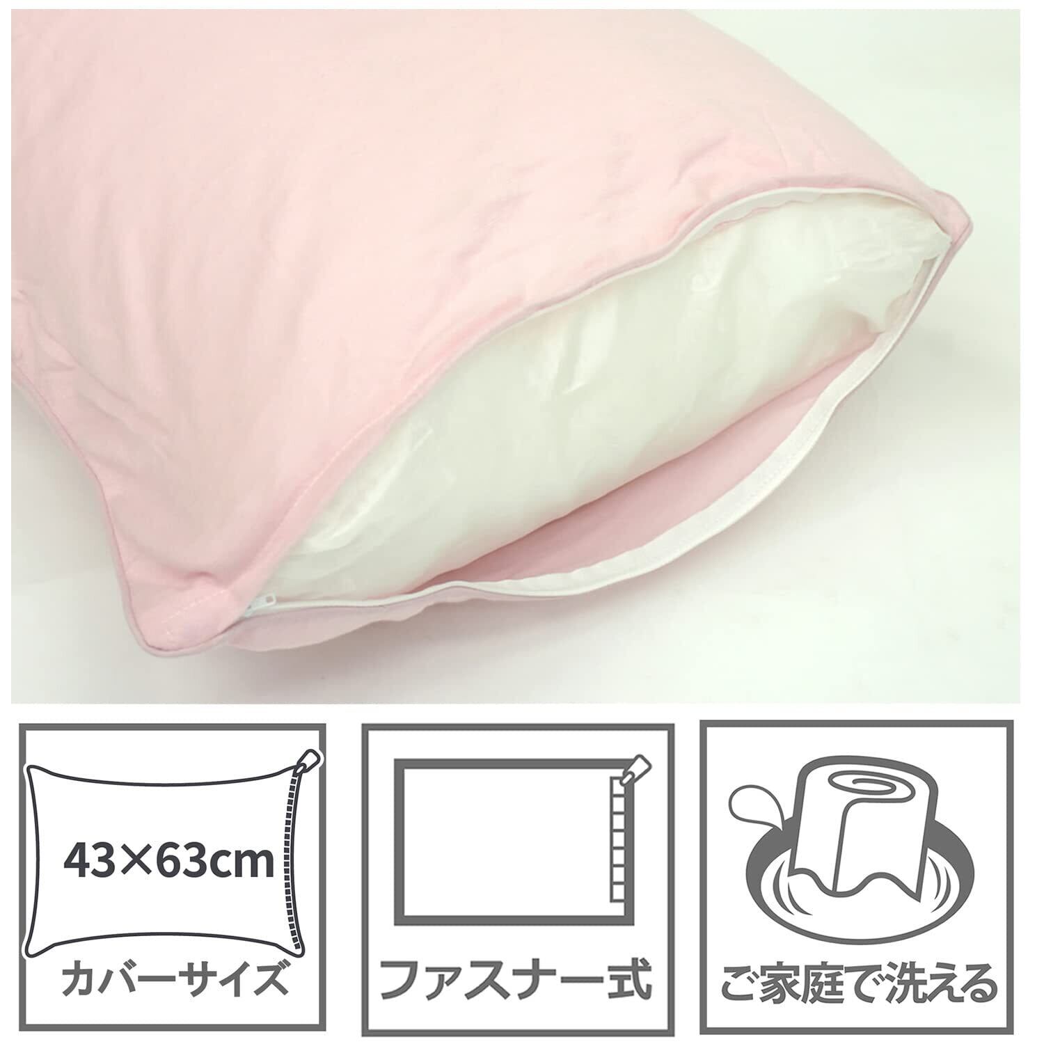枕サイズ43×63㎝用のカバー。開閉部は枕の出し入れが簡単なファスナー式。