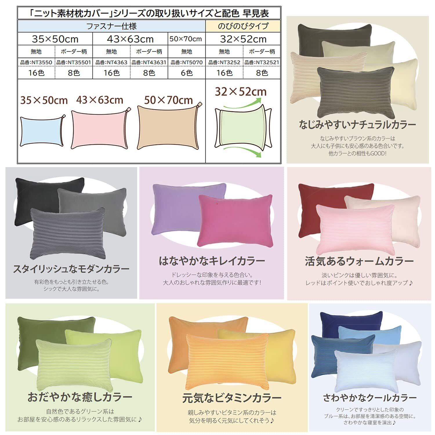 Tシャツのようなやわらかい肌触りのニット生地を使用したピロケース。吸水性の良い綿100%の生地でオールシーズン使用可能です。
