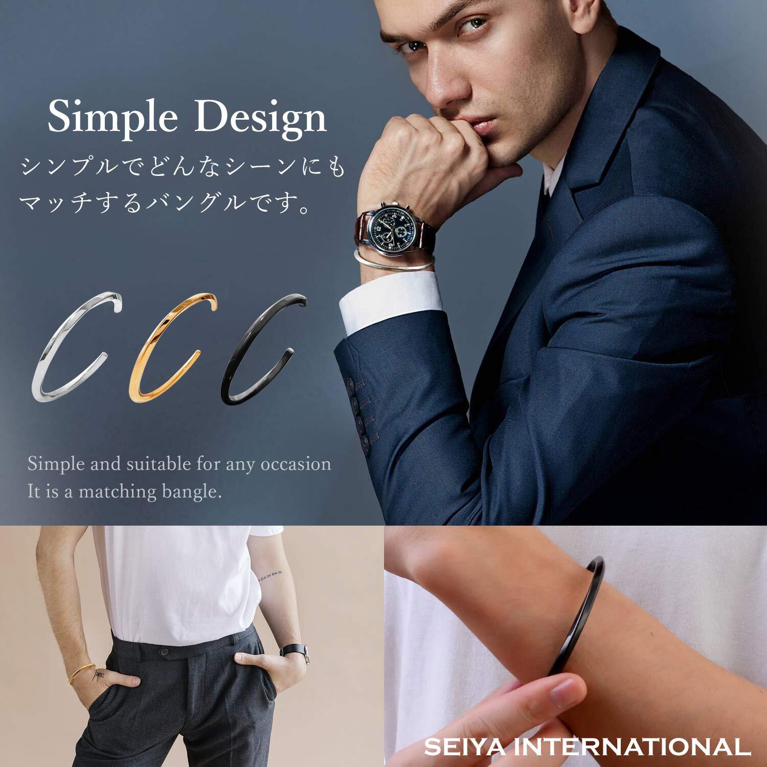 【 シンプルなアクセサリー 】シンプルなデザインなのでメンズにもレディースにも着用可能です。シンプルデザインで高級感がありますのでカジュアルなファッションにも、フォーマルなファッションにも合わせやすく、幅広く使用することができます。バングルとは、それだけでも十分にコーデの主役となりうるアクセサリーです。ワンポイントにするのも良いですし、複数のバングルや時計、他のアクセサリーとの組み合わせも楽しめます。