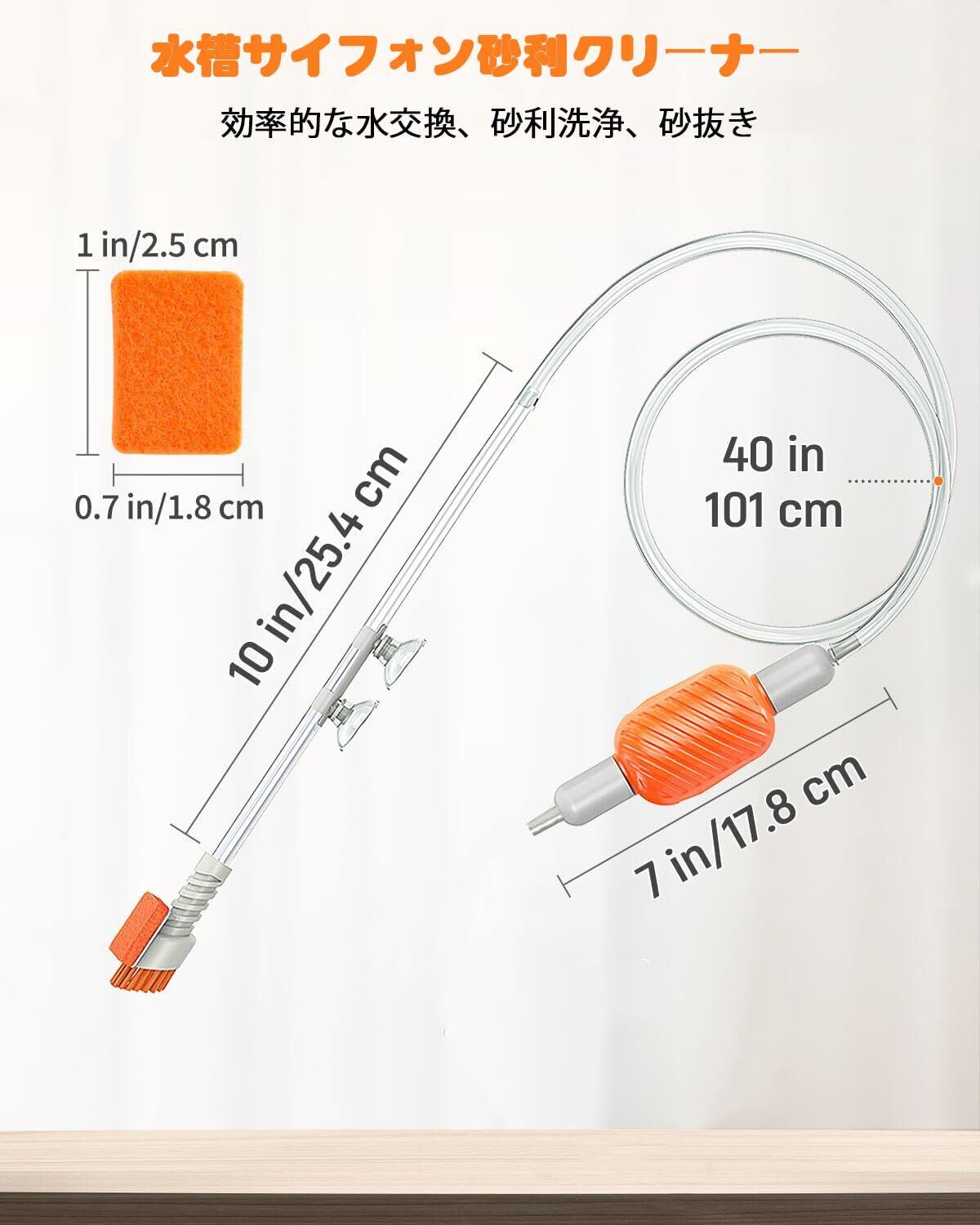 信頼性の高い材料:水槽の真空は透明なPVCチューブと優れた弾性を持つEVAサイフォンボールから構成されている。エアバッグの両端は取り外し可能で、清潔さと通気性に優れています。あなたの水生ペットには無害です。