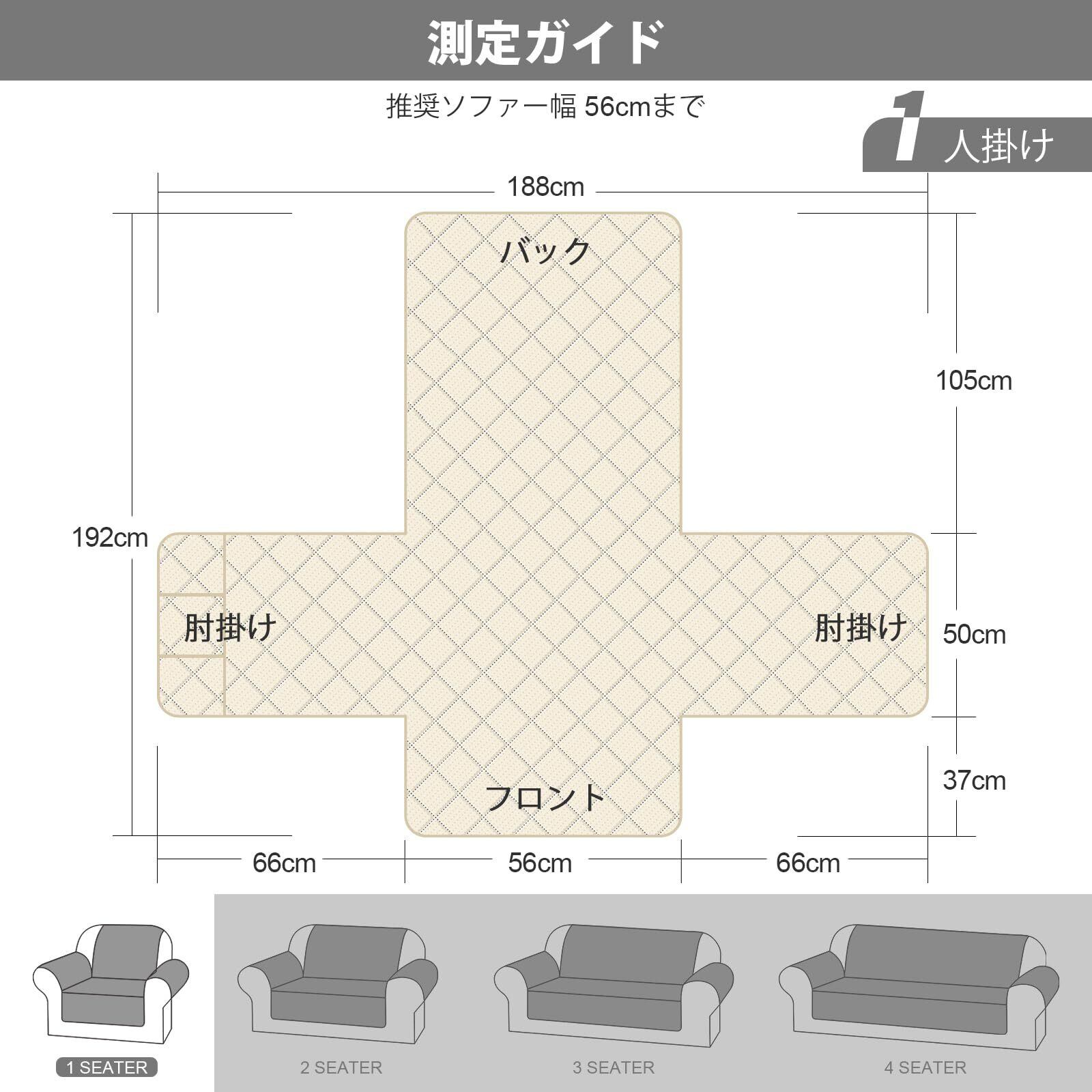 【サイズ】TAOCOCO 防水 ソファカバーは一人掛け:面積は192*188cm、二人掛け:面積は192*252cm、三人掛け:面積は192*303cm。※人工測量なので、多少の誤差がある場合がございます。ご購入前に、ソファーのサイズを測ってから、参考サイズに合わせてください。必ずソファーのサイズを測ってください。