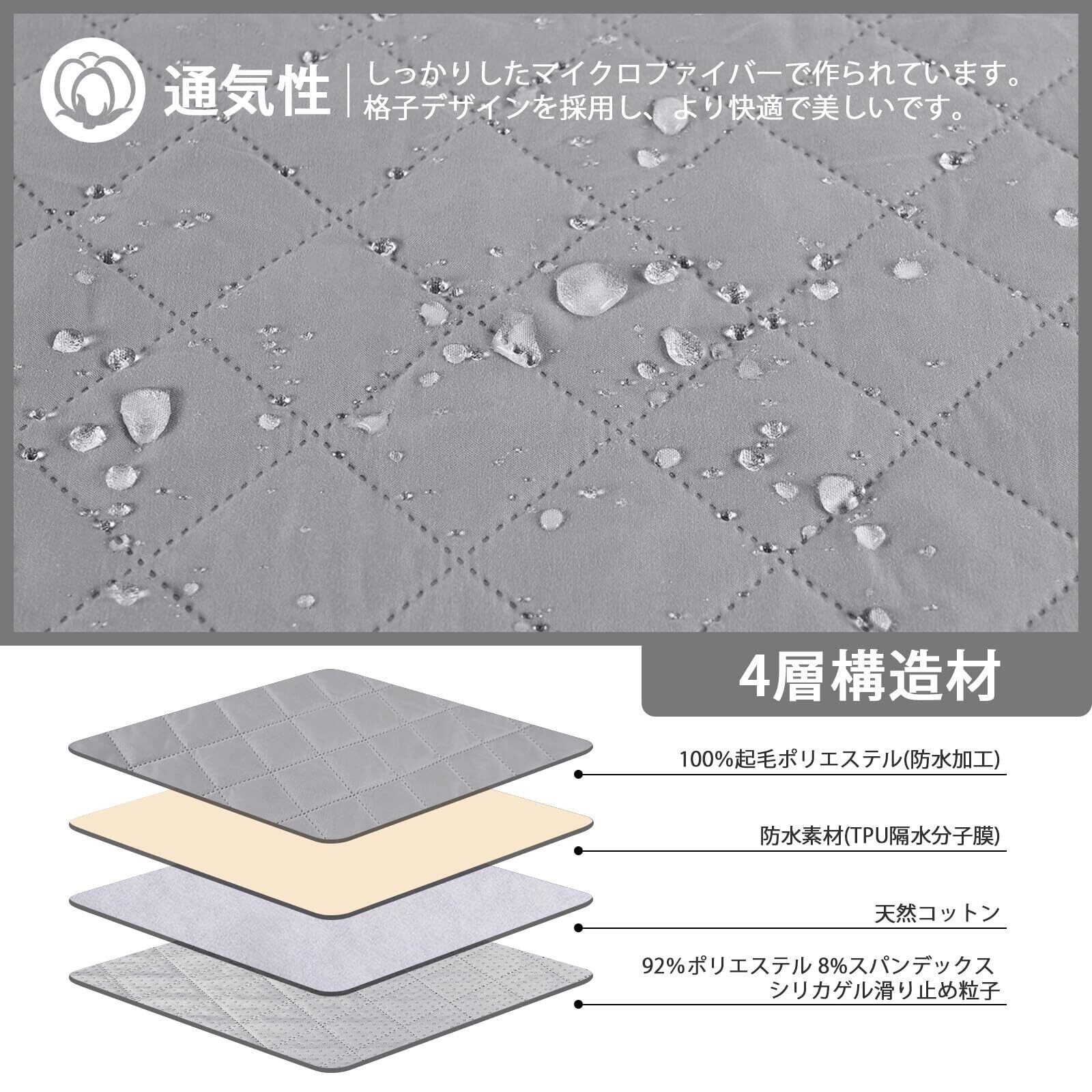 【防水素材】TAOCOCO 防水 ソファカバーは表地:ナノ防水塗装+100%起毛ポリエステル 中地:防水素材(TPU隔水分子膜)+天然コットン 裏地:92%ポリエステル+8%スパンデックス+シリカゲル滑り止め粒子 。