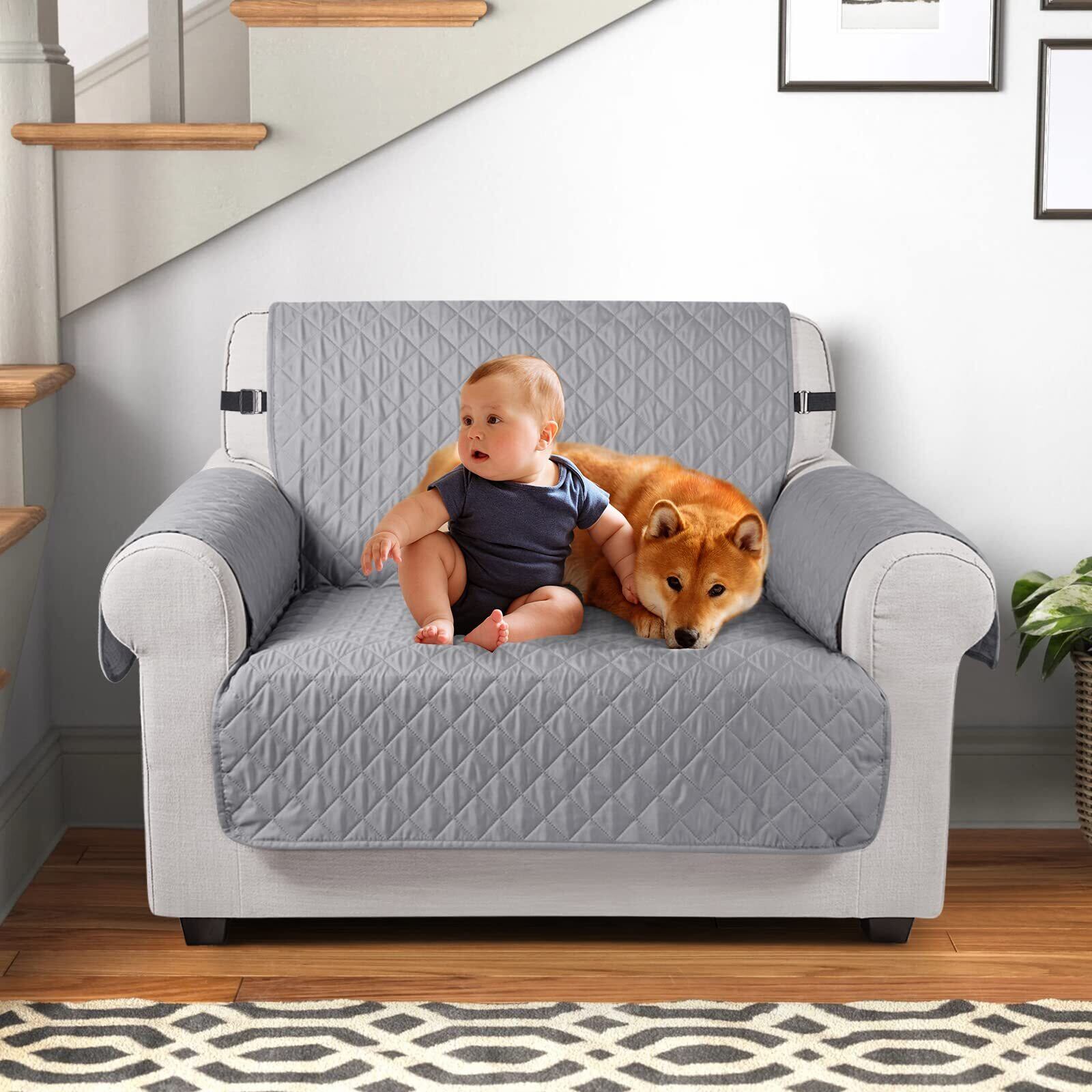 TAOCOCO ソファカバー 全面防水 ソファーシート 犬猫対策 毛髪不粘着 滑り止め 1人2人3人掛け 肘付き 替えソファカバー 防塵 汚れ防止 傷防止 爪とぎ防止 マルチカバー 四季適用 撥水加工 丸洗い可能 (ライトグレー色, 1人掛け) | hananoki