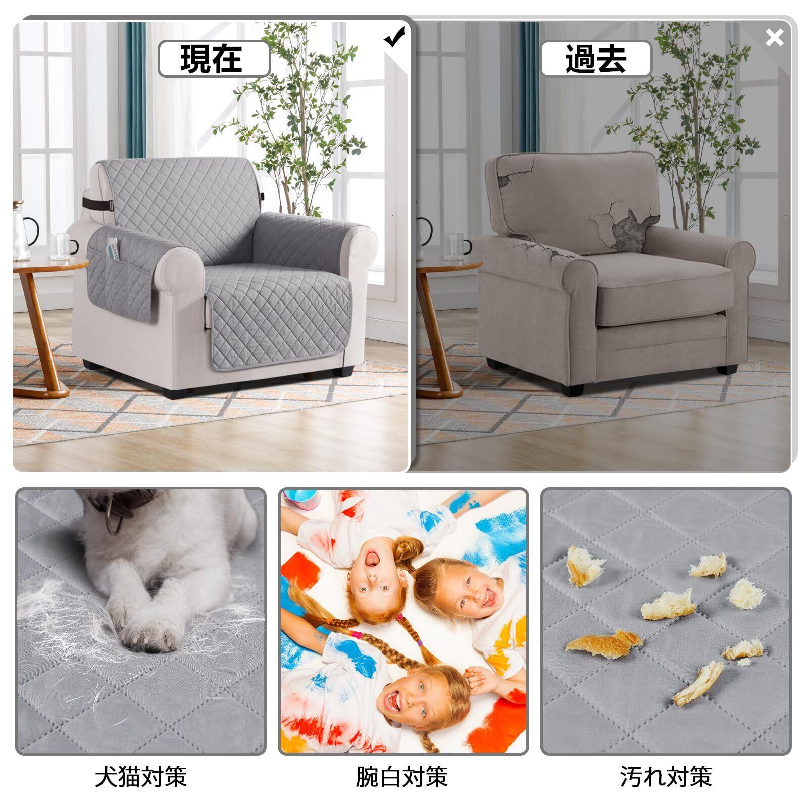 【腕白&犬猫対策】TAOCOCO 防水 ソファカバーは犬や猫がいるご家庭にぴったりで、新しいソファをペットや子供の汚れから守ります。 ソファーの背もたれに滑り止めの小粒があります、長さが調整可能のゴムバンドで、ソファを簡単に固定できます、マルチサイズにも適用します。 お子様やペットのいるご家庭に適用で、快適な体験をお届けします。