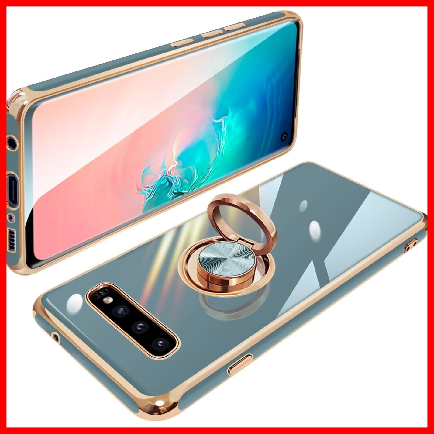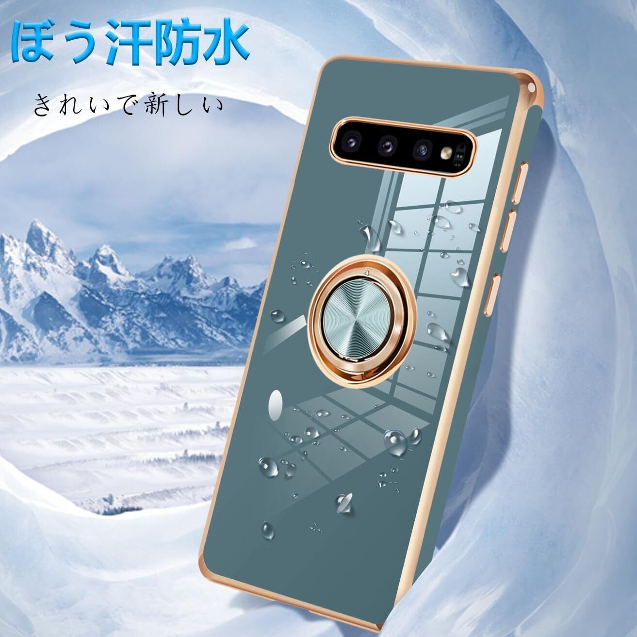 Galaxy S10 ケース リング付き SC-03L SCV41 ギャラクシーS10 リング カバー 耐衝撃 TPU 携帯カバー シリコン スタンド機能付き 360回転車載ホルダー(グレーブルー)