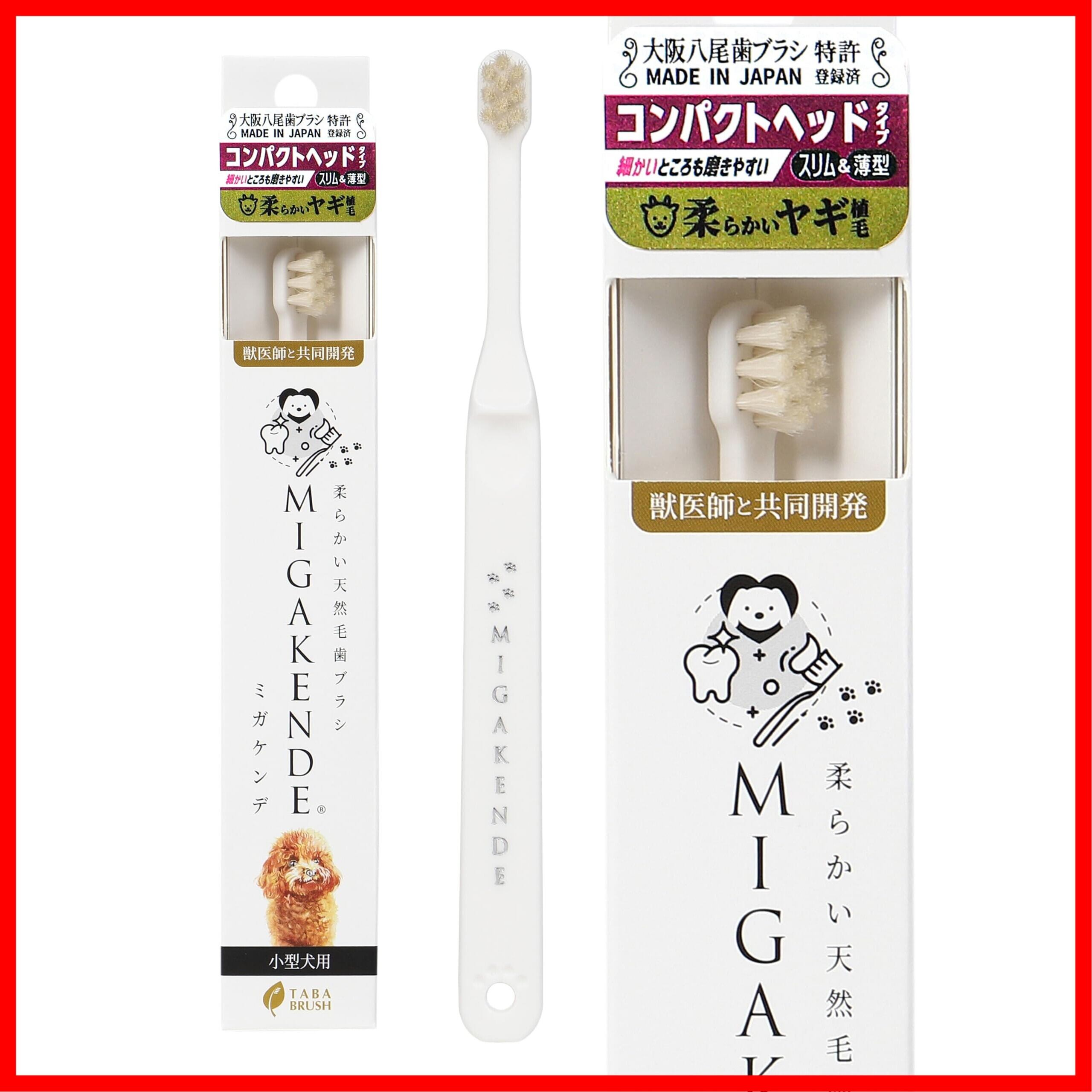 コンパクトヘッド 小型犬用 歯ブラシ ヤギ植毛:超やわらか 日本製 天然毛 MIGAKENDE (白, 1本)