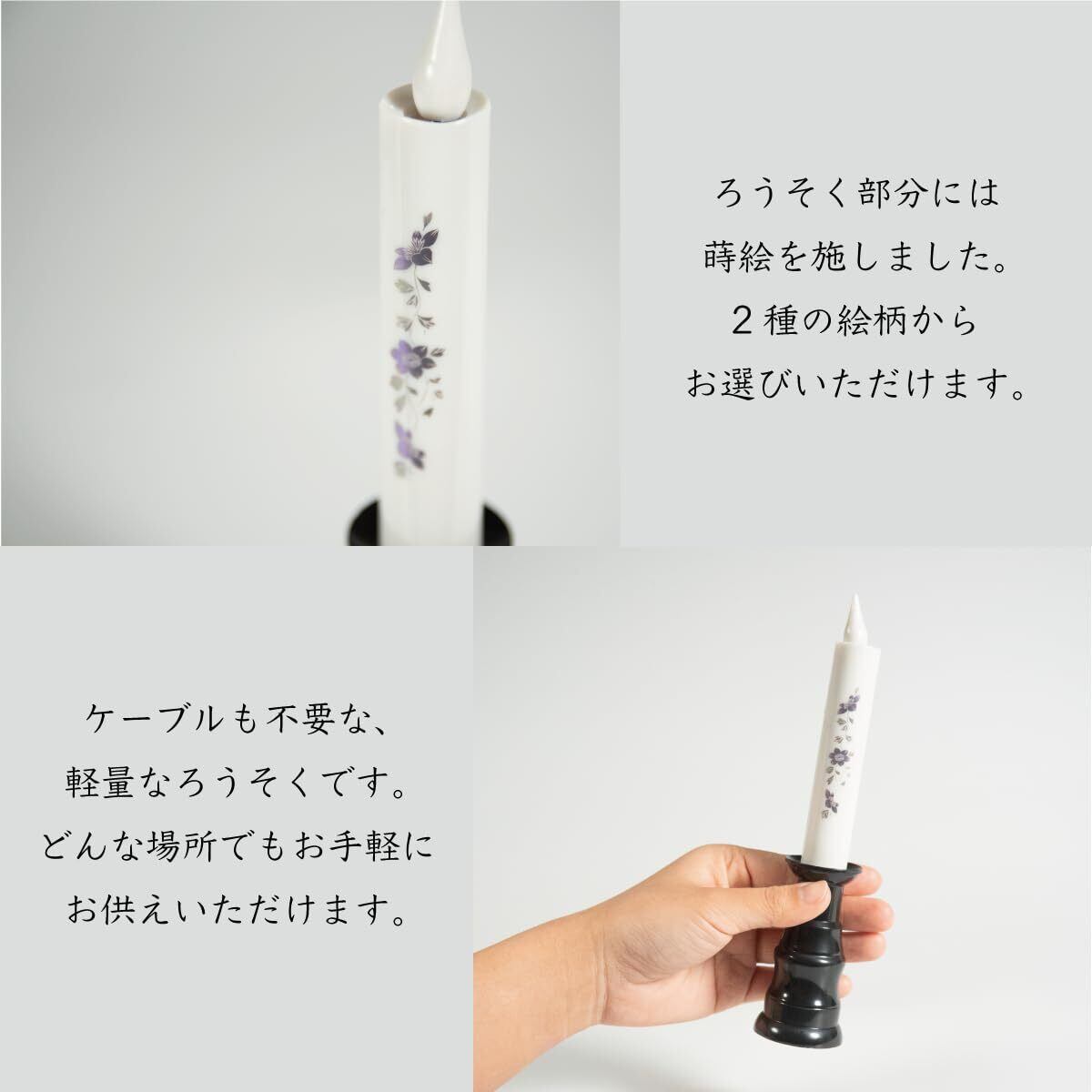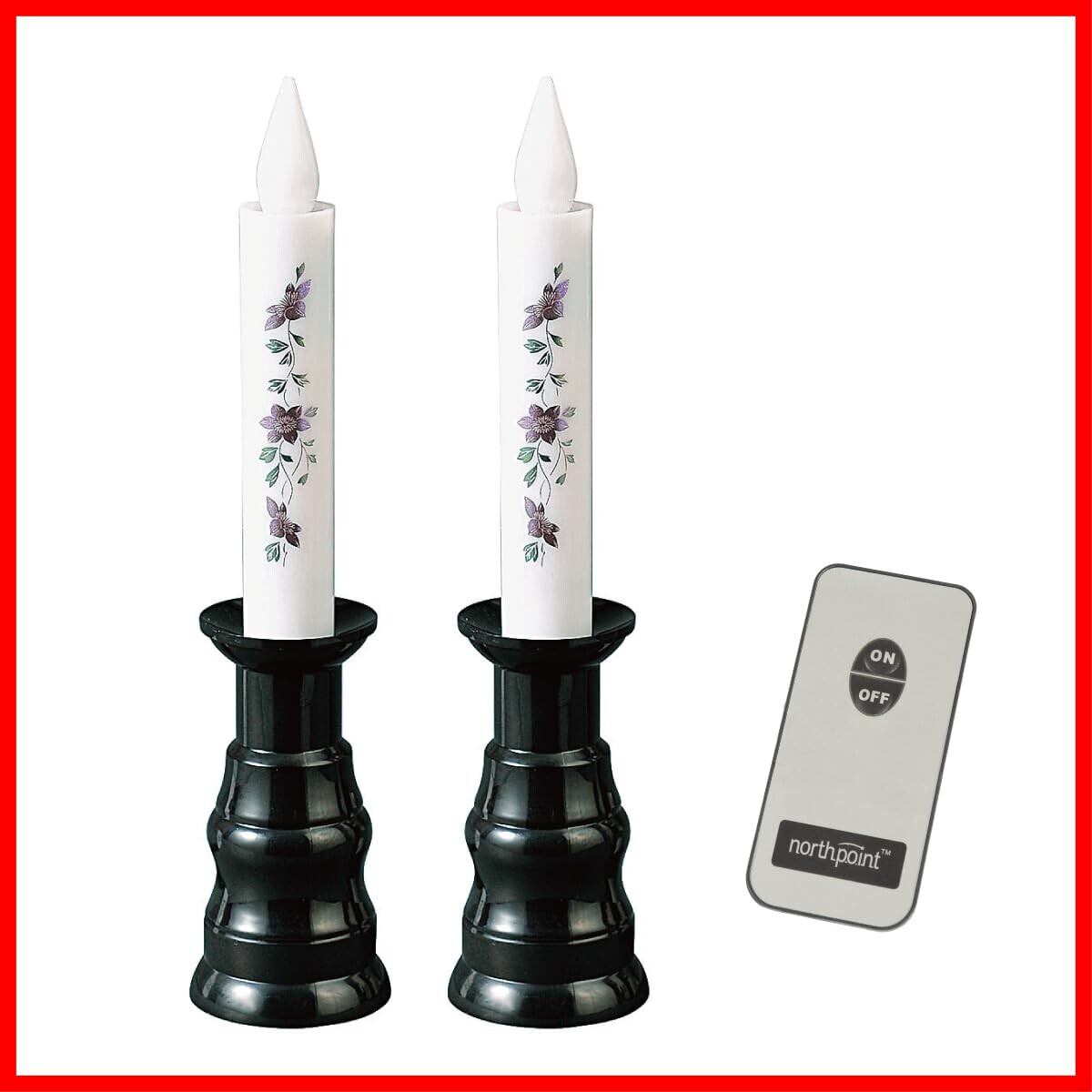 サンメニー LED ろうそく 2本セット リモコン 付属 ゆらゆら 炎 が ゆらめく ローソク 蝋燭 キャンドル 燭台 付き 仏具 小物 現代 仏壇 黒 蒔絵 鉄仙 毎日の お供え お参り に ペット 手元供養 国産 単4電池 2本 ×2使用 直径4.0×長さ18.5cm [Sunmany]