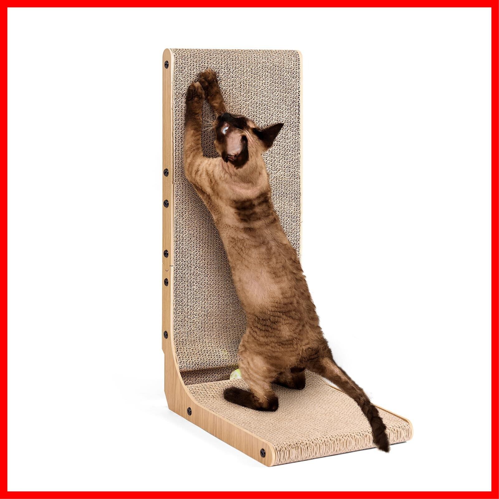 革新的なデザイン:家猫用の爪研ぎ段ボールはL字型のデザイン。壁やソファに立てかけて、家具を保護するためにお使いください。L字型にすることで、猫がさまざまな姿勢でひっかきできるよう、ひっかき面積を広くしています。