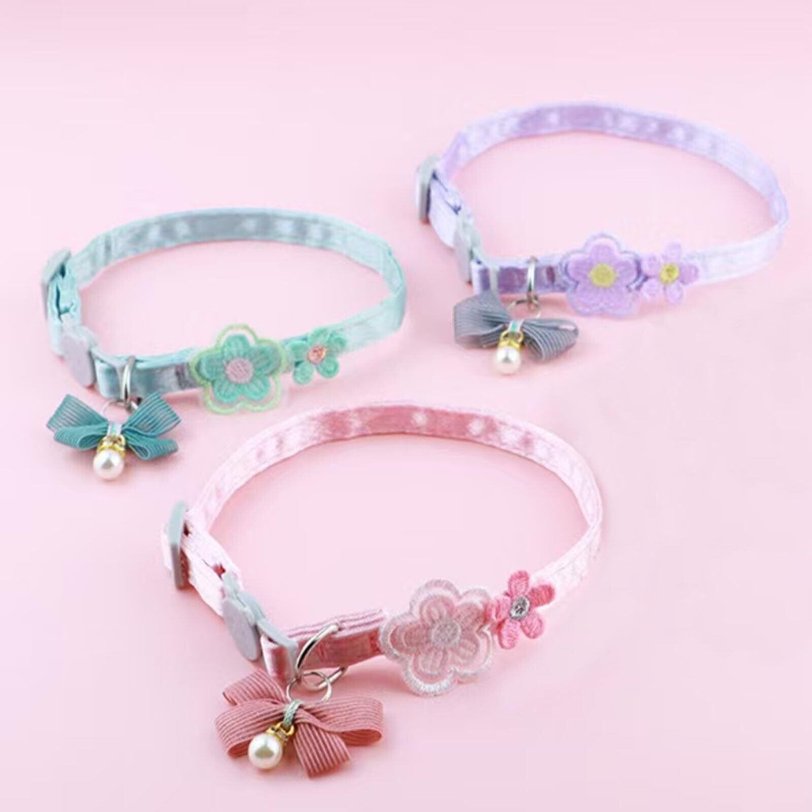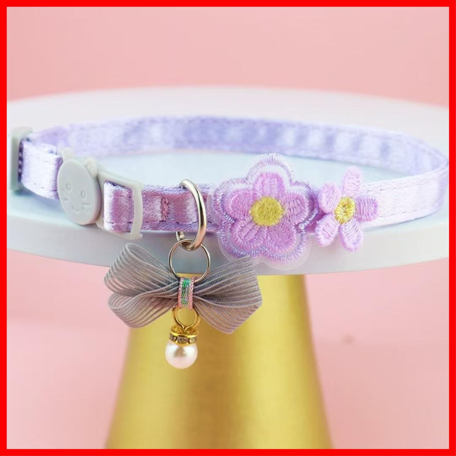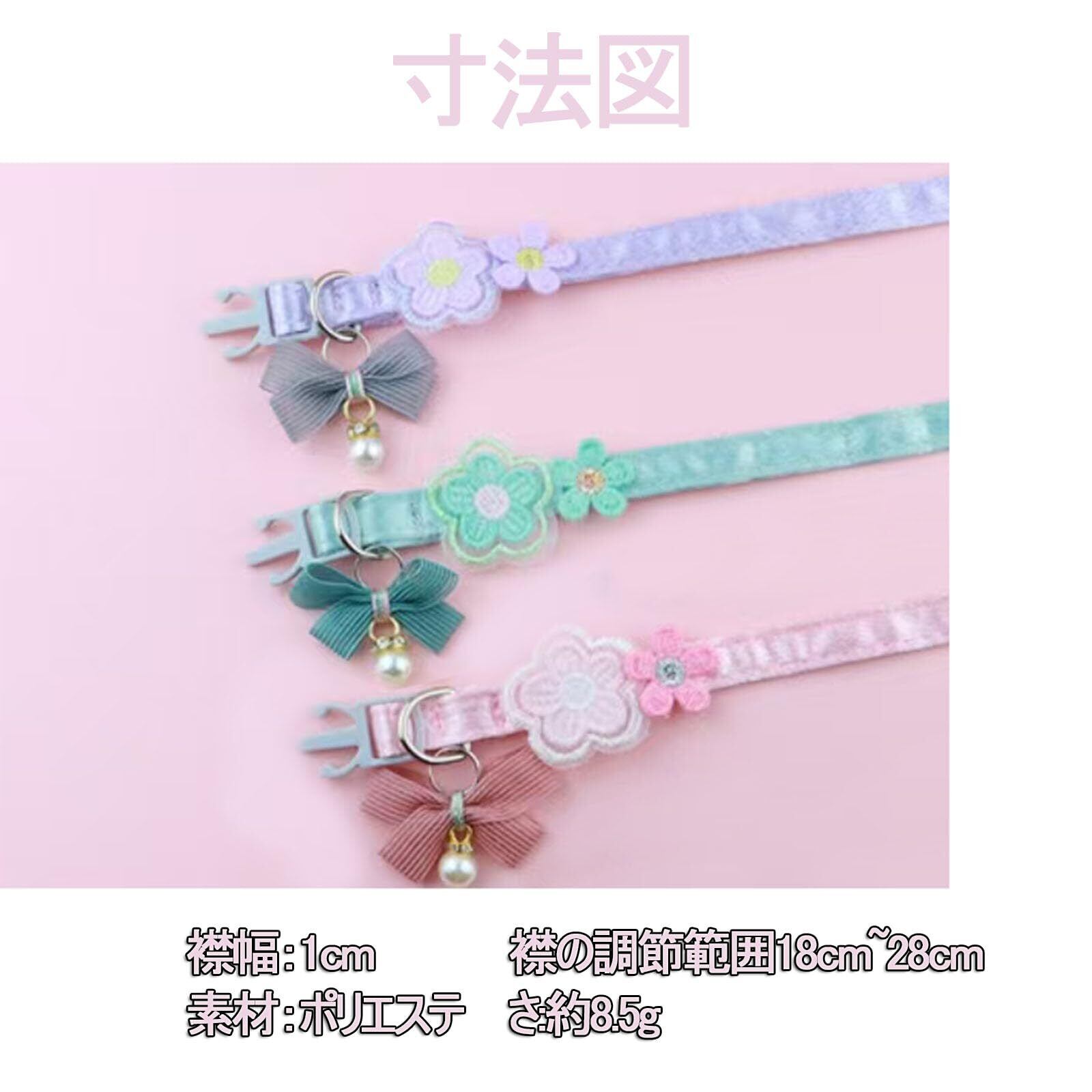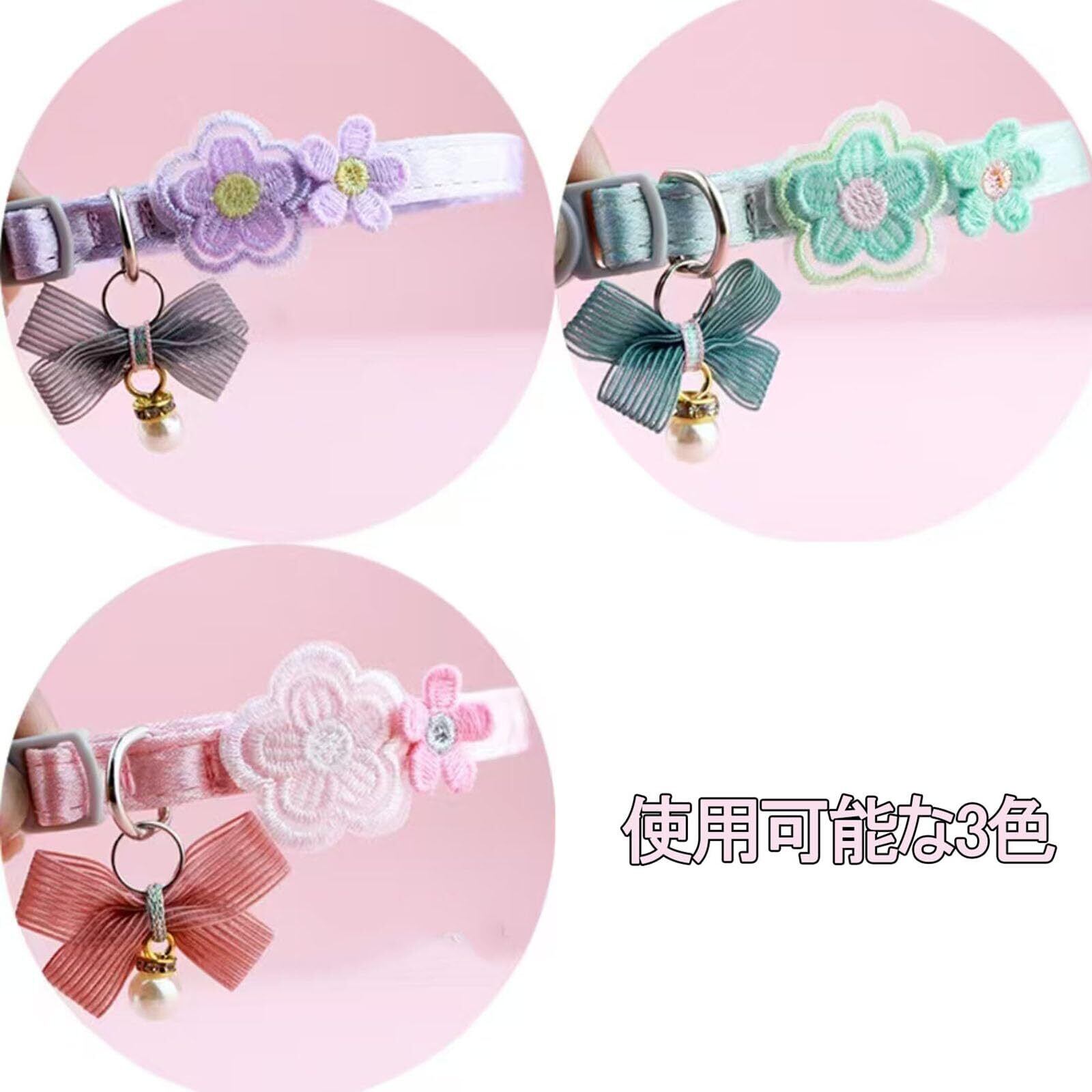 猫の首輪 首輪 レース 花柄 蝶結び 犬首輪 安全留め具 かわいいネックレス 可愛い 首飾り ペット用アクセサリー クリスマス 安全 調節可能 小型犬適用 猫用 犬用 パープル ピンク グリーン (パープル)