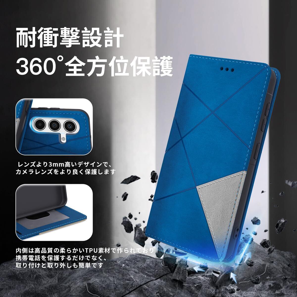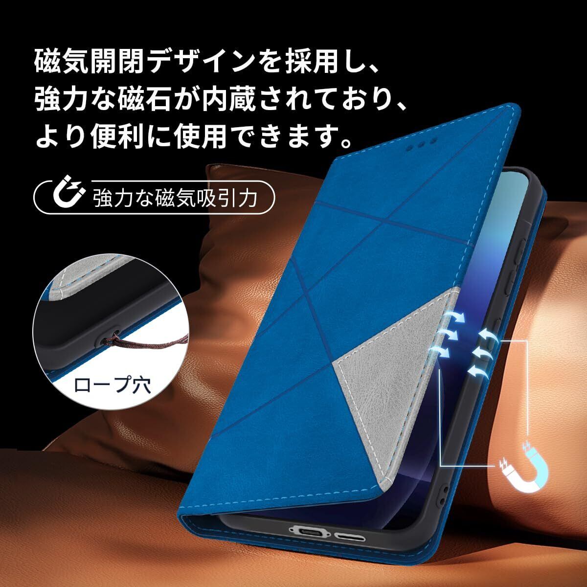 Galaxy A55 5G 手帳型 ケース 耐衝撃 高级PUレザー ギャラクシー A55 5G スマホケース 財布型 横置きスタンド機能付 SC-53E SCG27 カバー カード収納 全面保護 ラップホール付き のあるソフトタッチ マグネット内蔵 擦り傷防止 ファッション 耐摩擦 シンプル気質 (ブルー)