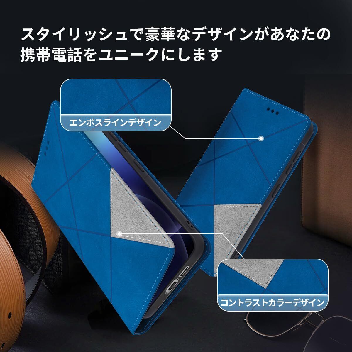 Galaxy A55 5G 手帳型 ケース 耐衝撃 高级PUレザー ギャラクシー A55 5G スマホケース 財布型 横置きスタンド機能付 SC-53E SCG27 カバー カード収納 全面保護 ラップホール付き のあるソフトタッチ マグネット内蔵 擦り傷防止 ファッション 耐摩擦 シンプル気質 (ブルー) | hananoki
