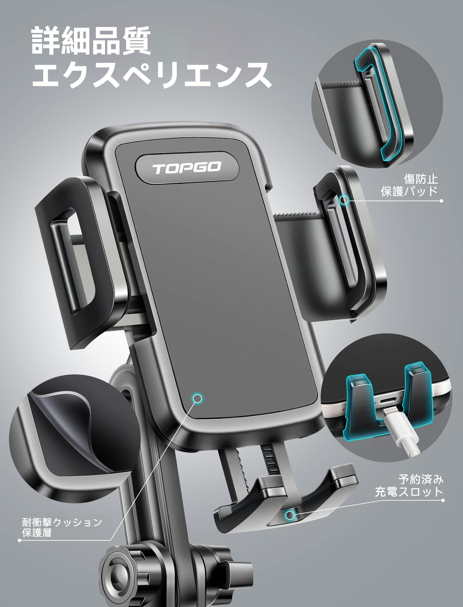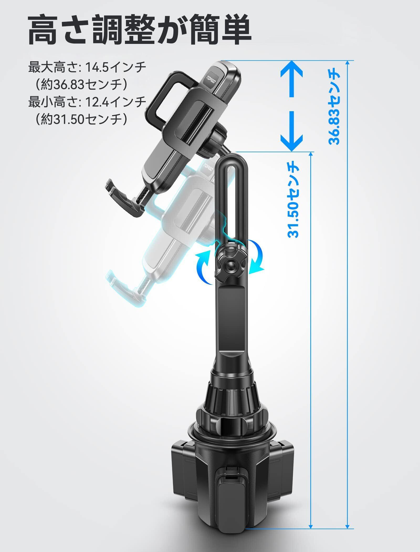 TOPGO スマホホルダー 車 ドリンクホルダー 車載ホルダー カップホルダー スマホスタンド 車 【 機械式伸縮延長ポール 車載 携帯ホルダー 縦・横・上下・左右自在調節 iPhone 14 Pro Max/Galaxy S23 Ultra 多機種対応(ブラック)