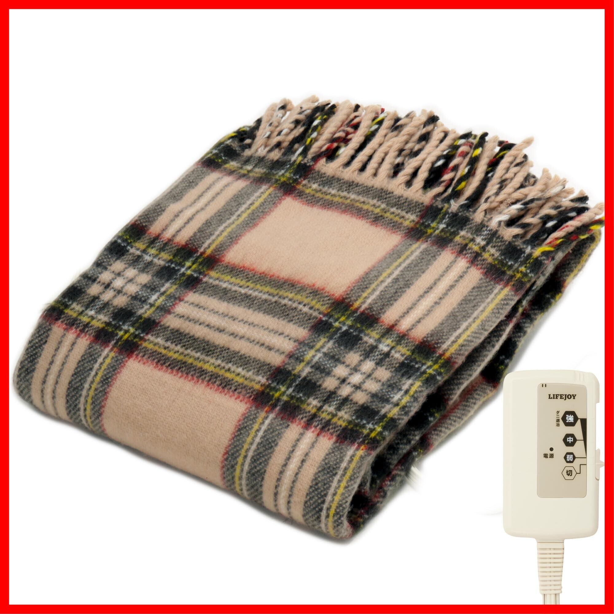 ライフジョイ 電気ひざ掛け 日本製 ベージュ チェック柄 160cm×82cm 電気毛布 洗える ブランケット 大判 ふわふわ あったか JPN161CC