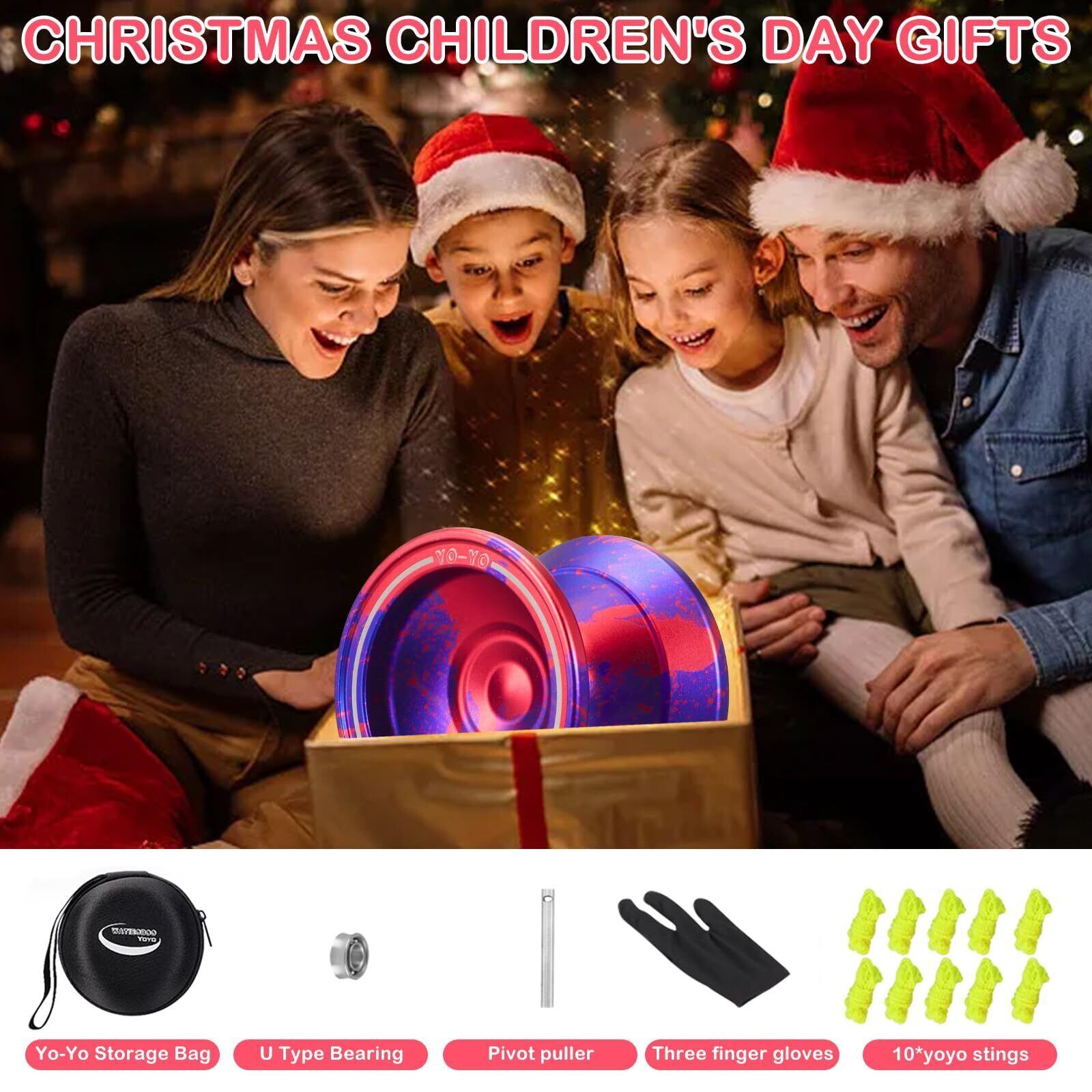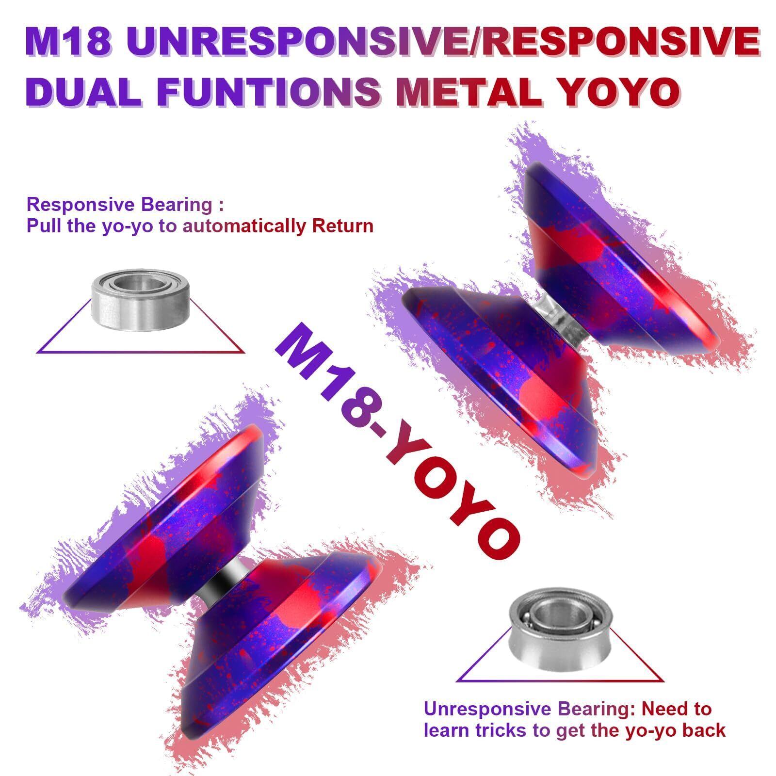 Watieoboo Yoyo 専門 メタルヨーヨー プロ、子供初心者向け反応型ヨーヨー、大人中上級者向け非反応型ヨーヨー、U字型KKベアリング+グローブ、交換用ヨーヨー糸10本付き (パープルレッド)