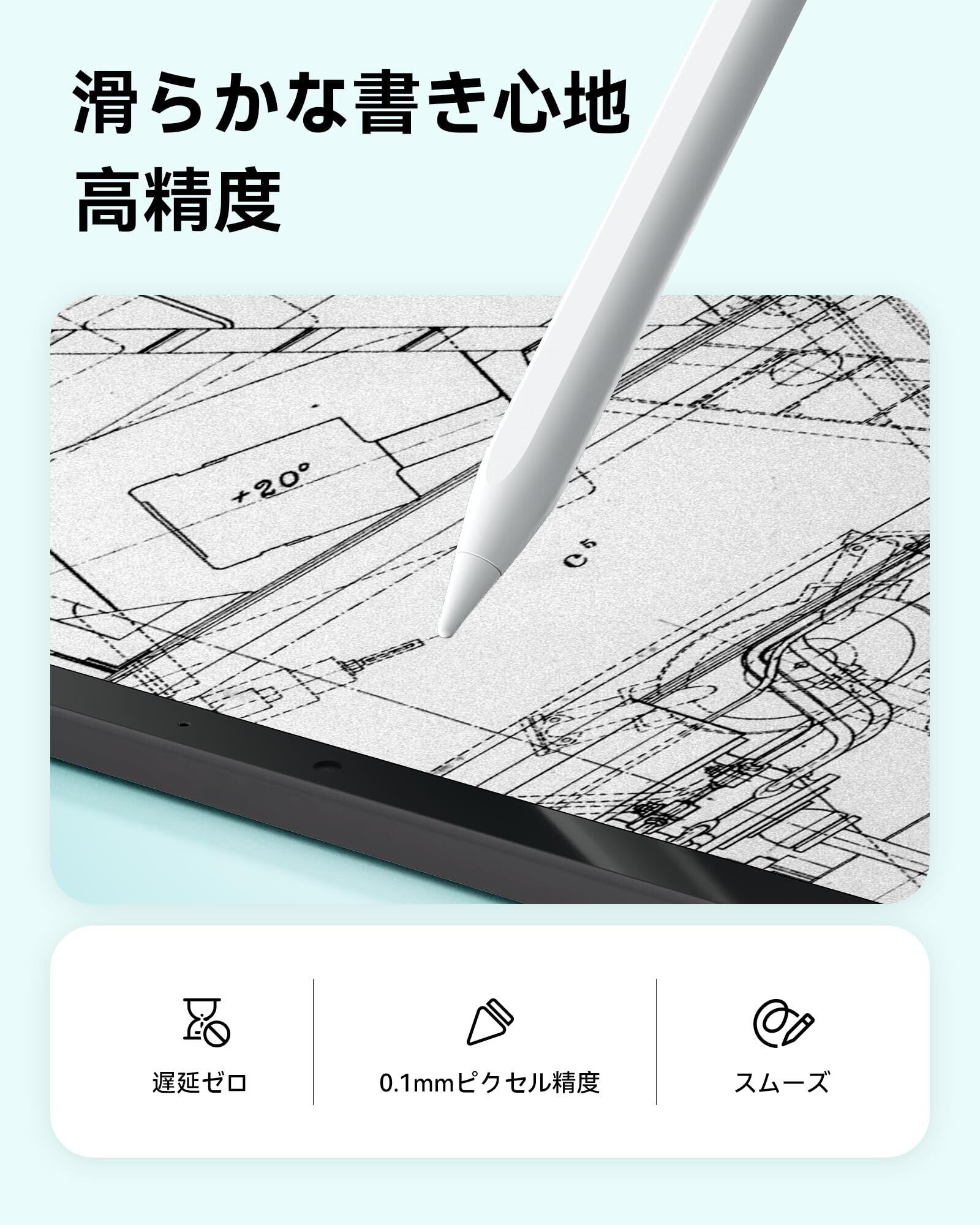 【本物のペンのように使いやすさ】複雑なBluetoothペアリングが不要で、ペンをタッチだけで使えます。パームリジェクション機能により、デバイスのスクリーンに手を置いても途切れることのないクリエイティブスペースで、紙のように滑らかな筆記や描画を楽しめます。タッチペンの本体がABS樹脂製で、表面がサンドブラスト加工が施され、滑りにくく握り心地がよく、コーティングが長期間の使用でも酸化しにくく黄ばみにくいので、お手入れも簡単です。ipad ペンのペン先が高品質のポリマー素材で作られており、20kmのペン先耐久テストに合格し、元のiPencilのペン先よりも耐久性があります。