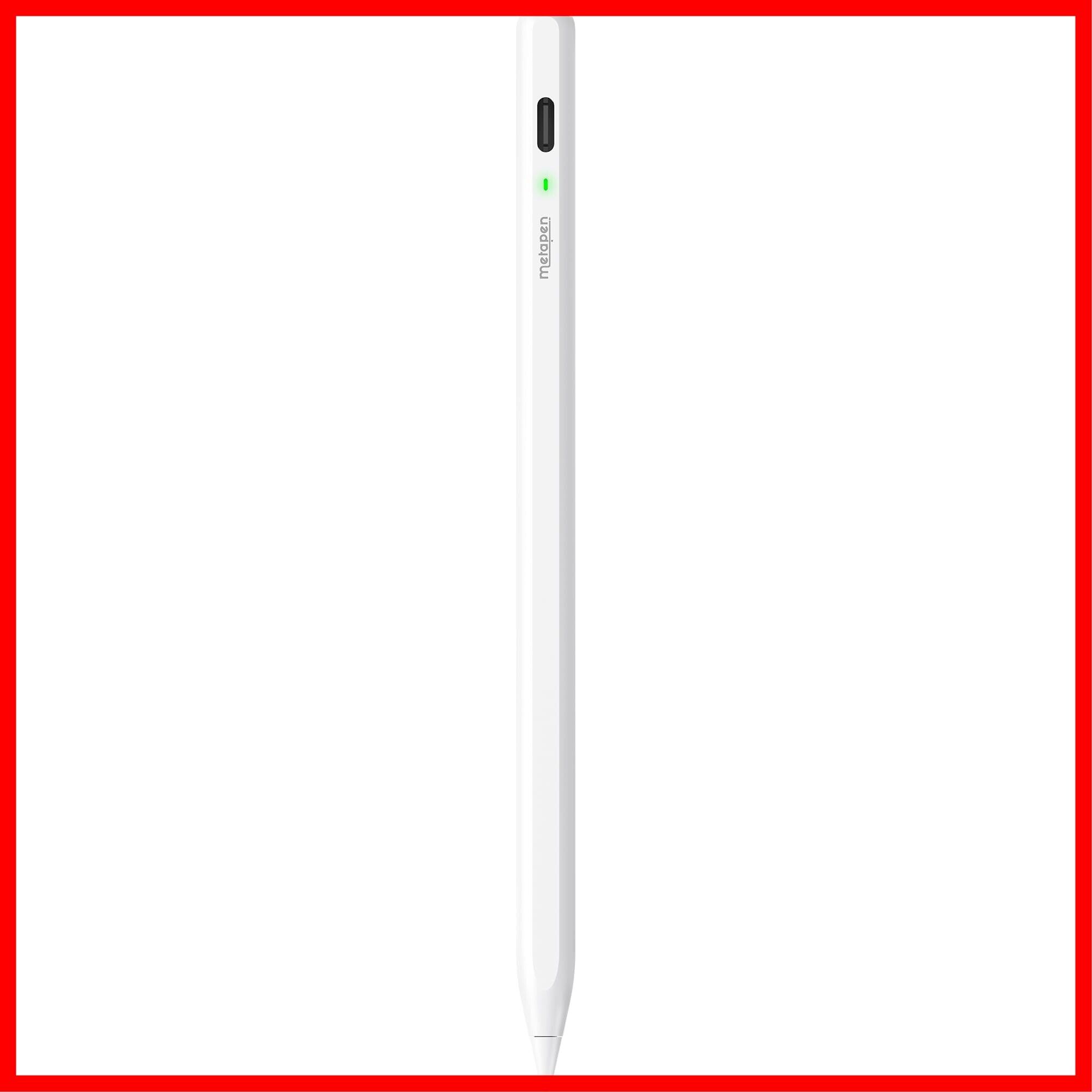 【超軽量&長時間使用】Metapen iPad ペン 2024年新登場 アップルペンシル ペアリングなし 磁気吸着なし 極細 超高感度 誤作動防止 軽量 10g 便利 耐摩 タッチペン 長時間使用 実際な執筆体験 Type-C急速充電 2018年以降・2025年新型iPad対応(Mini7に非対応)Air8