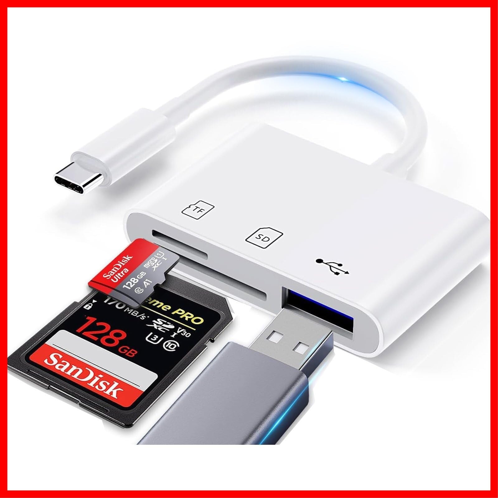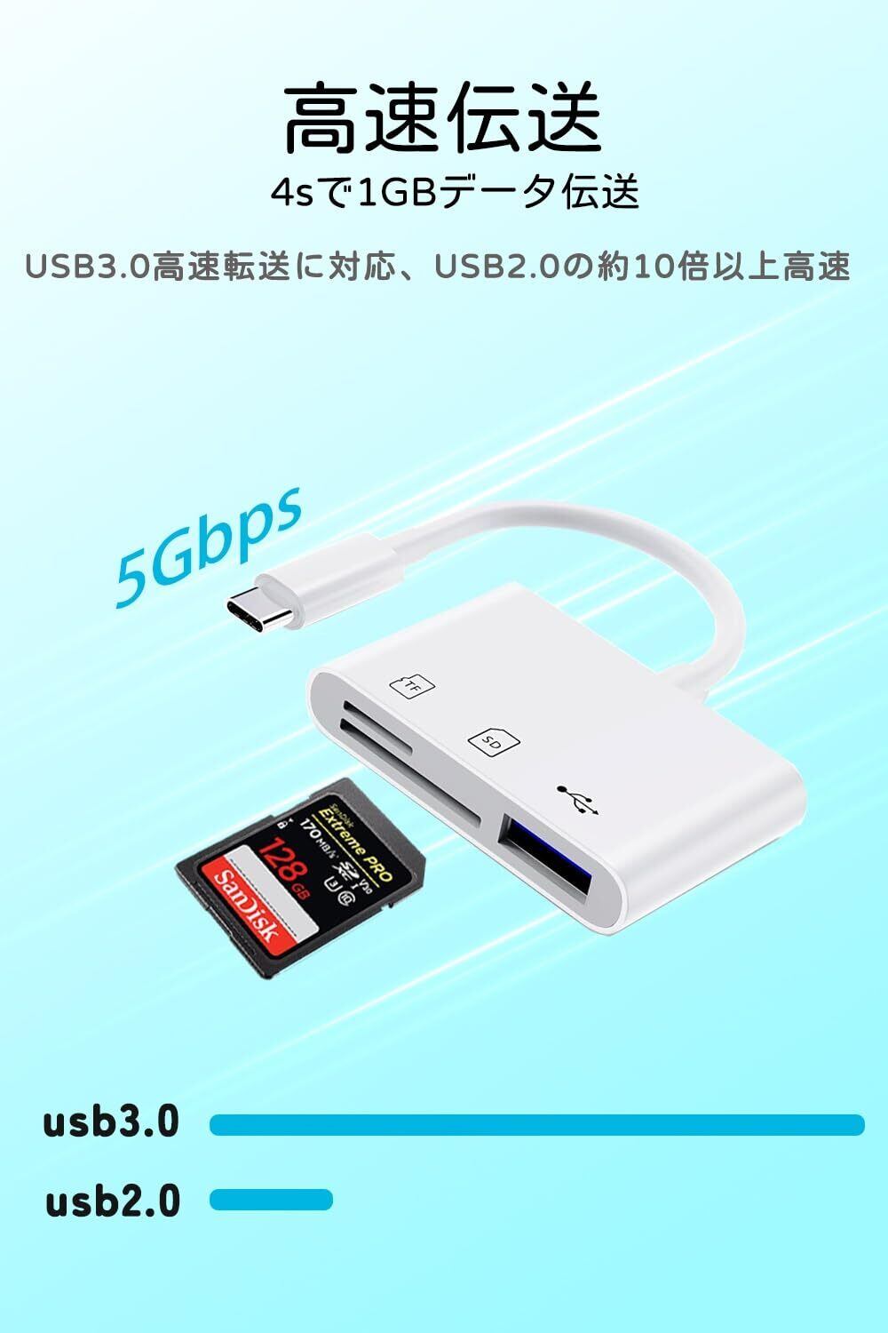 【2024新安定版】 SDカードリーダー type-c メモリカードリーダー 3in1 USB/SD/TF変換アダプタ 0TG機能 設定不要 写真/ビデオ 高速伝送 双方向転送 カメラリーダー iPhone15/タイプC スマホ/MacBook/PC/Galaxy/Android/Type-Cなど機器に適用