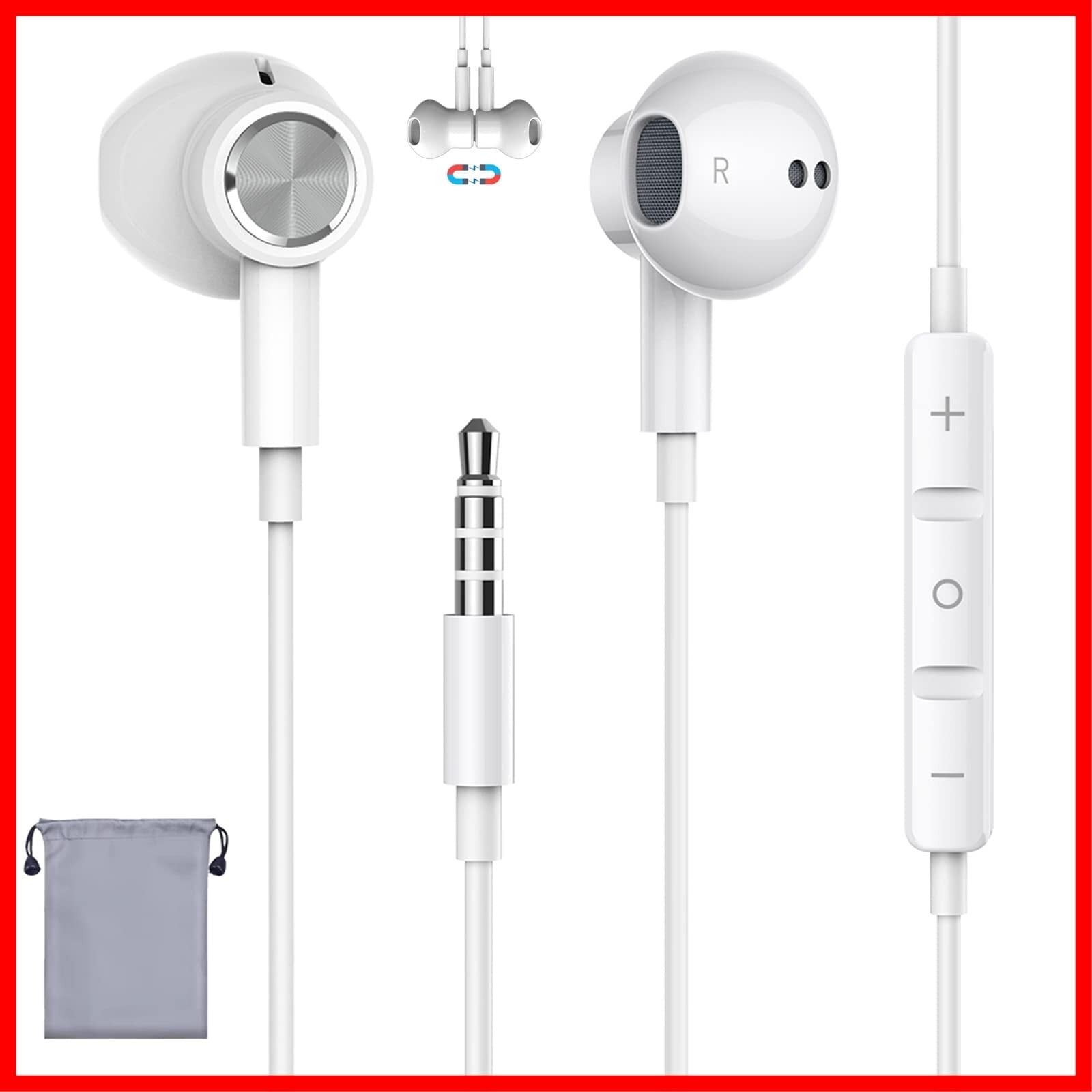 イヤホン 有線イヤホン マイク付き 3.5mmジャック 【音質強化バージョン】 磁気設計 絡み防止 いやほん カナル型 イヤホンマイク 音量調整 通話対応 ノイズキャンセリング テレワーク/オンライン会議/トレーニング/在宅勤務/パソコン/PC/ctia規格 全ての3.5mmインターフェース機器に対応 収納袋付き