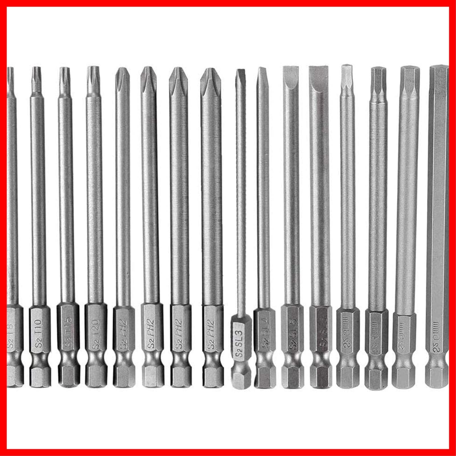 Bestgle6.35 ビットドライバービット 片頭ビット16本組 六角ビット100mm 精密ビット六角ビット マイナスビット 十字軸 六角ビットドライバーセット中空トルクス頭 磁気クロスヘッドドライバービットドリルビット工具 磁気六角ビットセット 電動ドライバービット