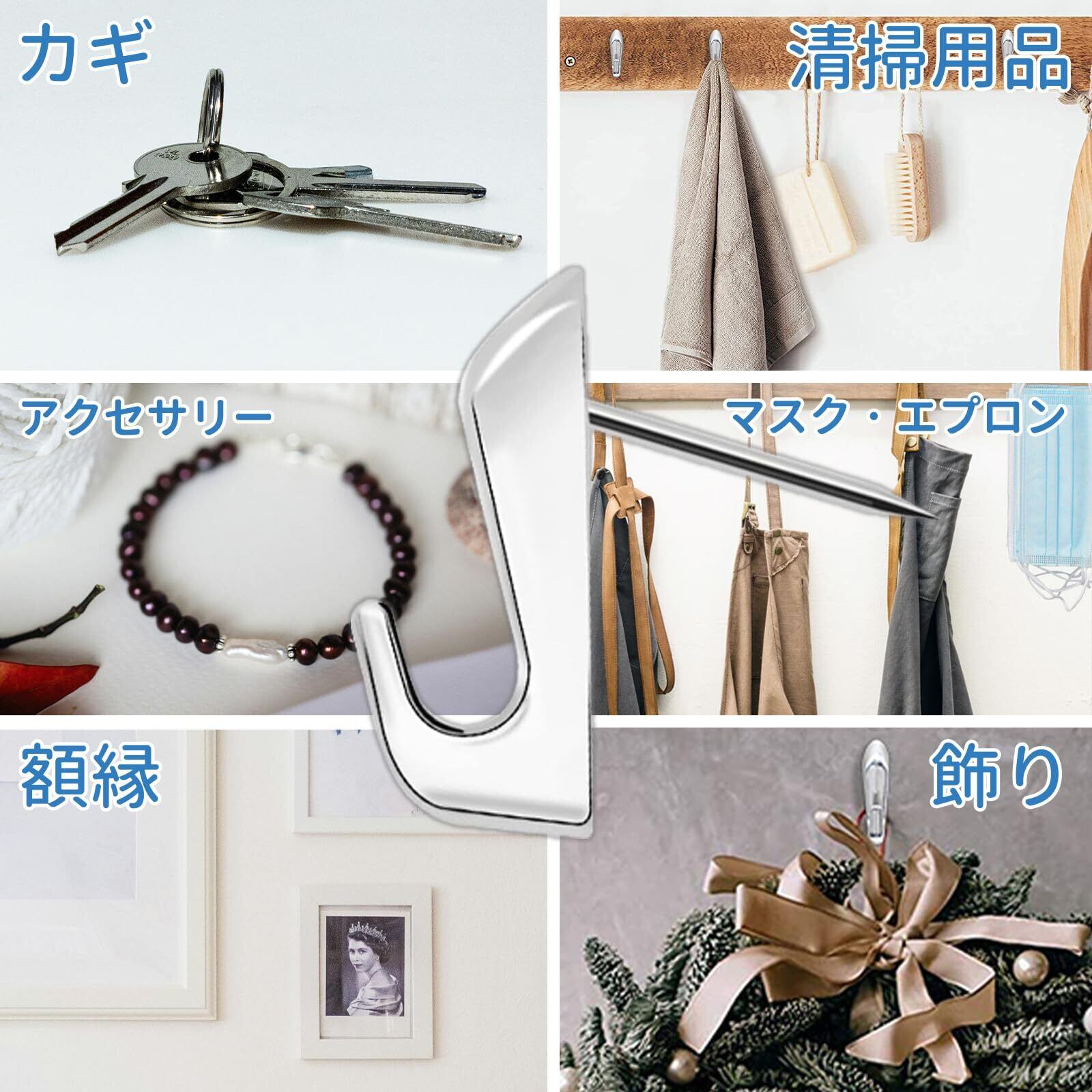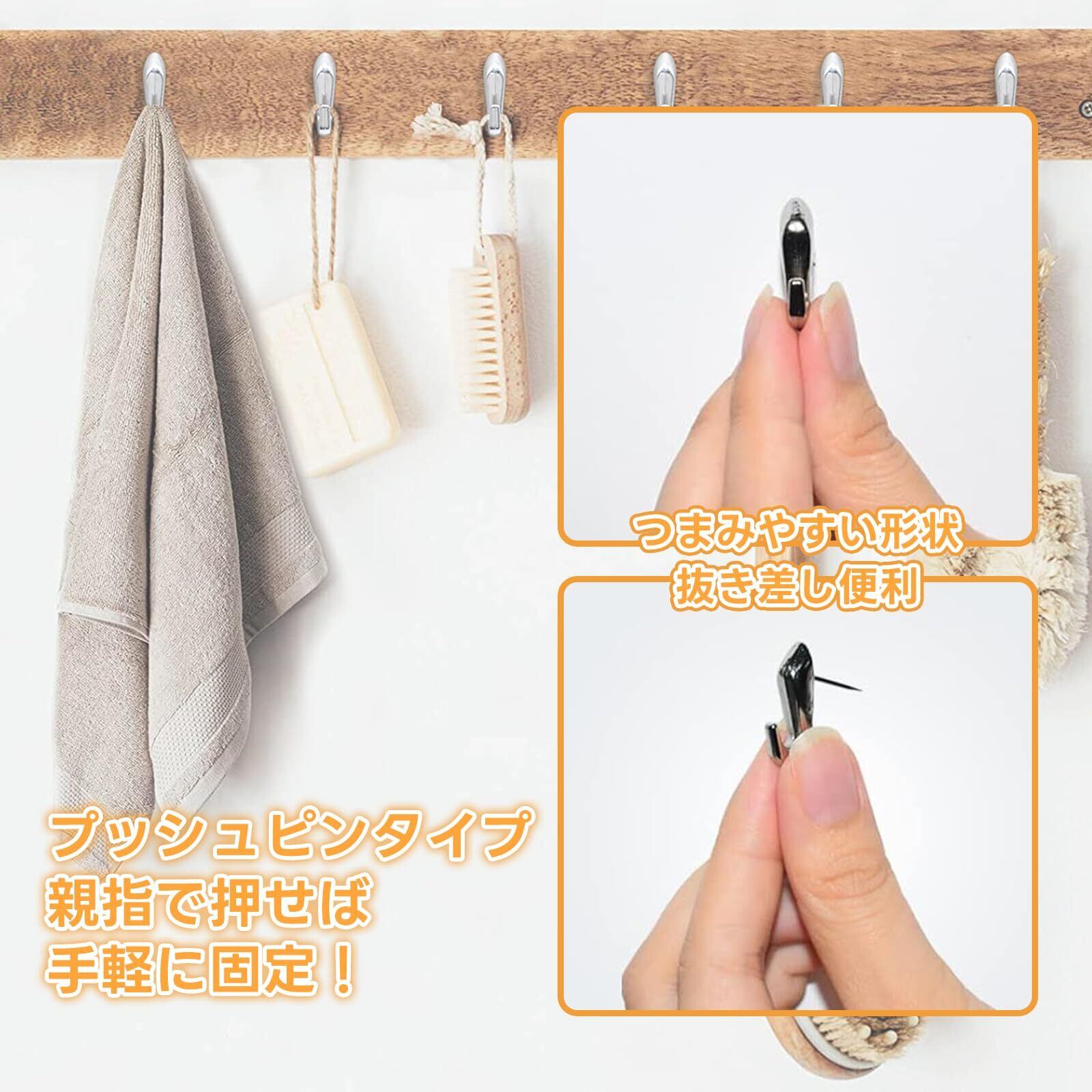 【多様な用途】壁面収納で収納スペースを増やせる便利な画鋲フックです。カレンダーや鍵、ハサミ、アクセサリー、帽子などの小物から、壁掛け時計やタオル、カバン、リュック、コート、額縁などの少し重い物までも掛けられます。ピンとして写真・ポスター・イラストなどの固定にも利用できます。