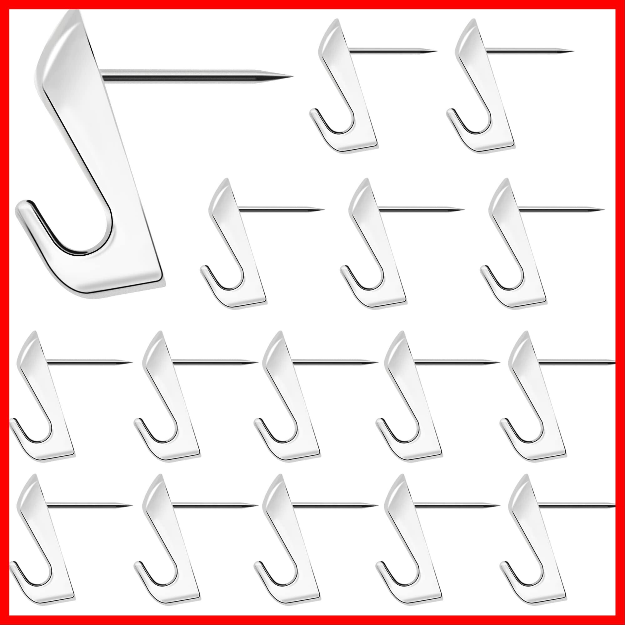 壁掛けフック 壁を傷つけない 16個セット 賃貸 石膏ボード フック 金属 釘 ピン 耐荷重最大5kg 収納ケース付き プッシュピンスタイル 壁 傷つけない ベニヤ・木用 プッシュピンピクチャー 石膏ボード ・ベニヤ 木壁対応 絵画 壁掛け展示 油絵 プッシュ壁掛け お風呂 オフィス 浴室 キッチン (シルバー)