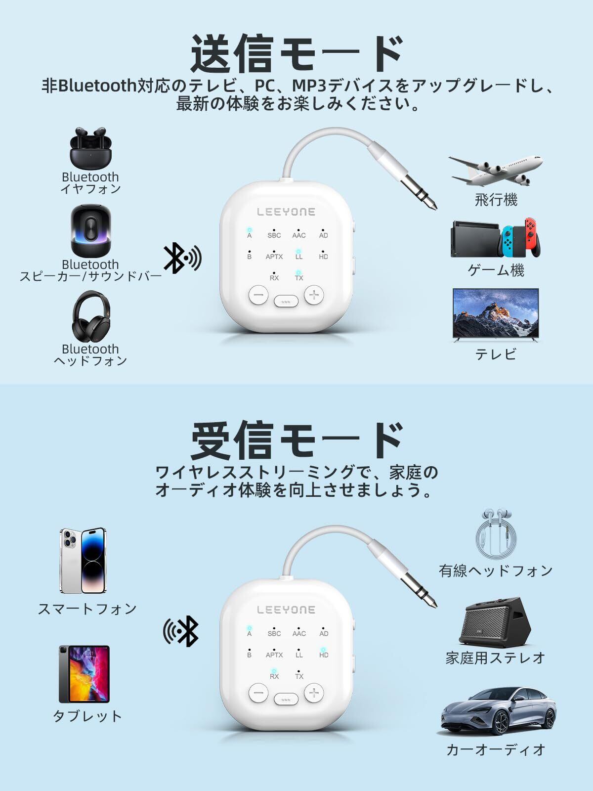 Bluetooth 5.4 ワイヤレスオーディオトランスミッター&レシーバー (受信機 + 送信機 一台二役) Aptx低遅延 対応 2台同時接続 24時間連続運転 AirPods ヘッドフォン PC TV ジム 車載用 飛行機旅行にも最適 | hananoki