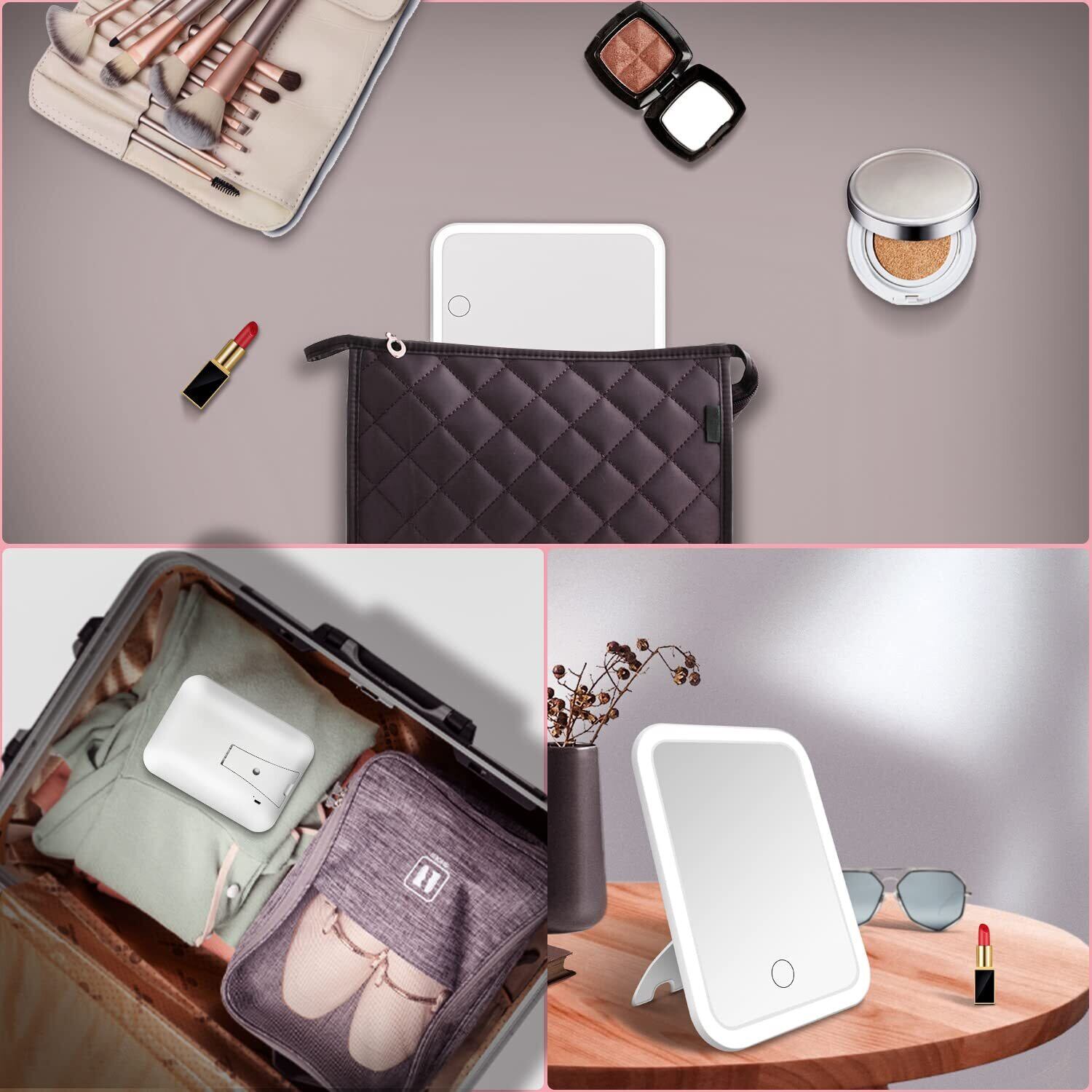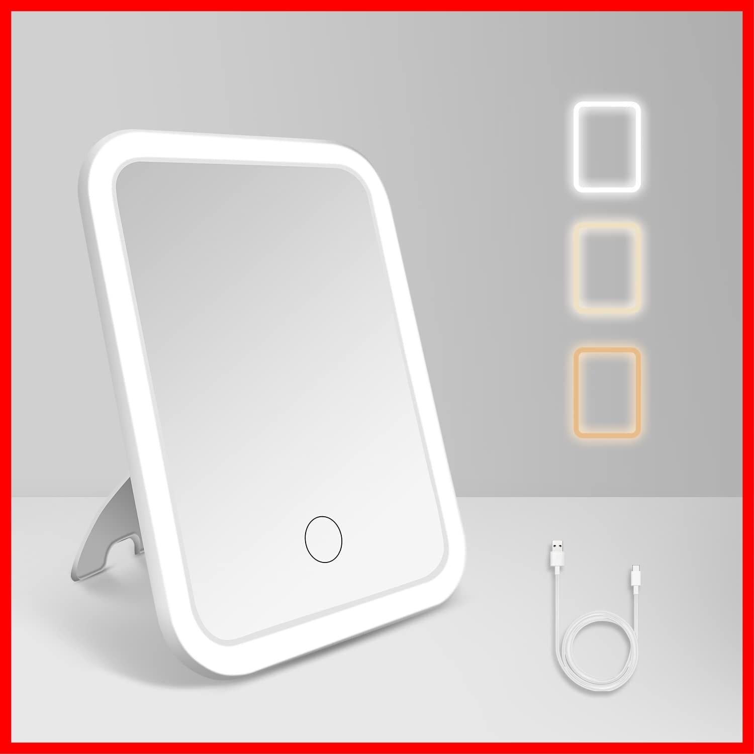 tekstap ライト付きミラー、3色モード 明るさ調節可能 鏡 ライト付き、持ち運びに便利 led ミラー 軽量、充電式 化粧 鏡 led、旅行/卓上/寝室に適したポータブル 女優 ミラー、女の子のプレゼント(四角)