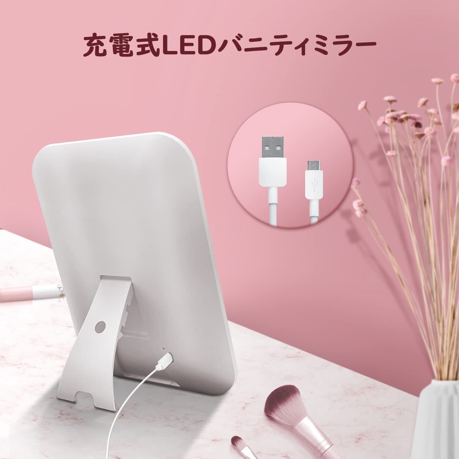 tekstap ライト付きミラー、3色モード 明るさ調節可能 鏡 ライト付き、持ち運びに便利 led ミラー 軽量、充電式 化粧 鏡 led、旅行/卓上/寝室に適したポータブル 女優 ミラー、女の子のプレゼント(四角) | hananoki