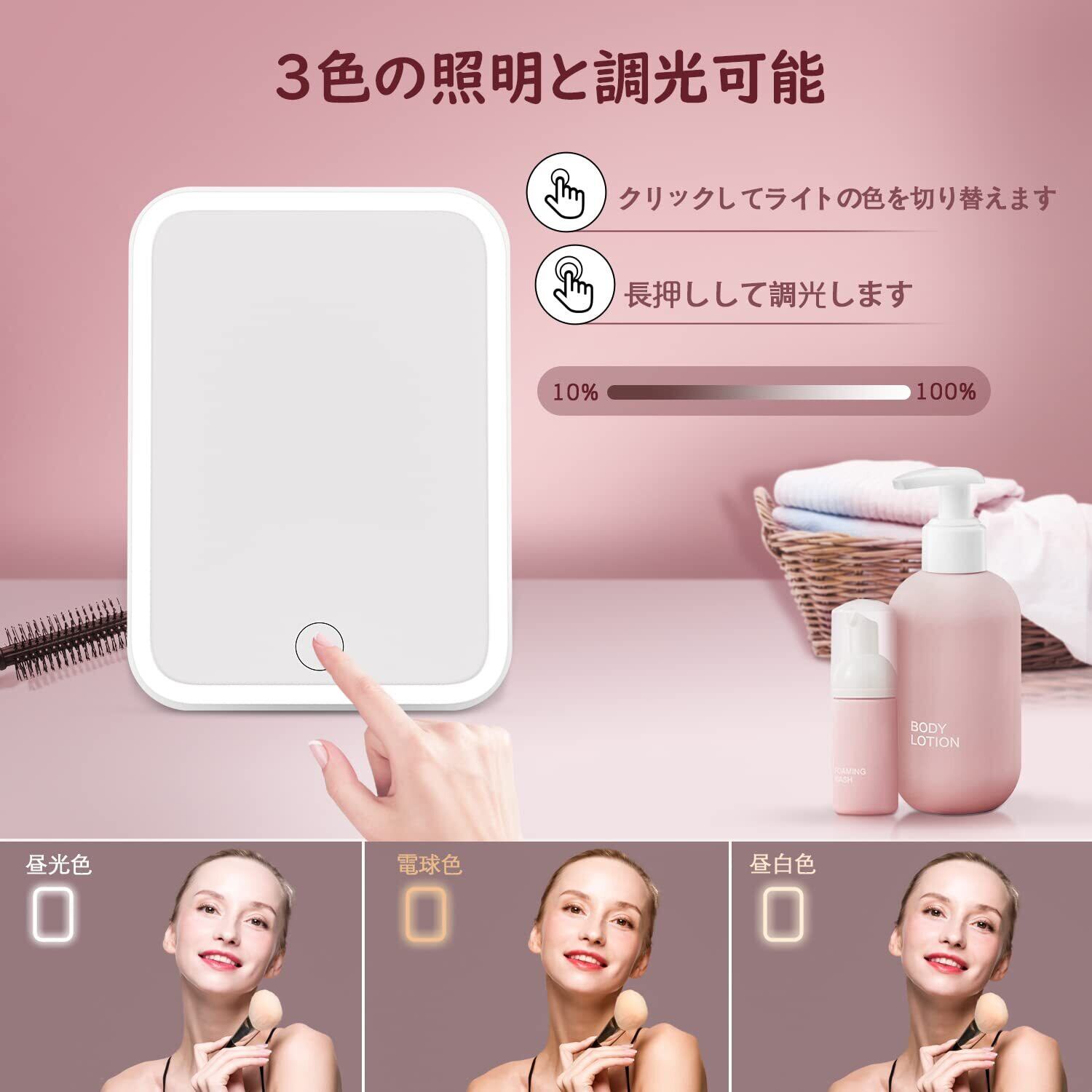 充電式 led 化粧鏡:この鏡 ライト付きは1200 mAh内蔵バッテリーがあり、USB 充電式、1回の充電で最大輝度は約1.5時間使用できます。このライト付き鏡は手間が省けて環境にも優しい。