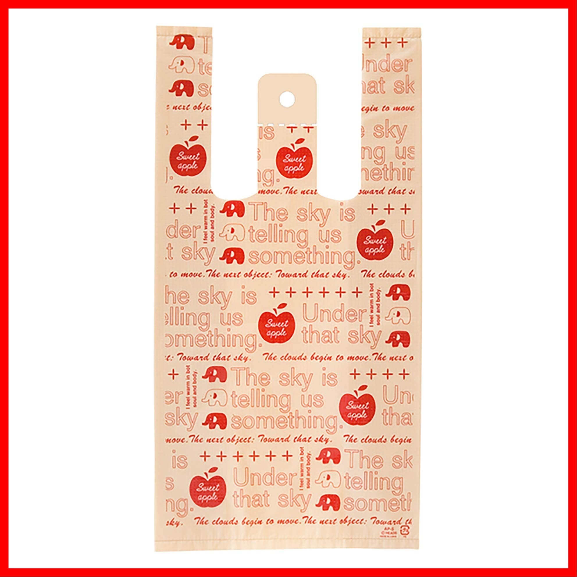 ヘッズ(Heads) 手提げ袋 レジ袋 アップル ぞうベージュ W180×D100×H350mm S 片面デザイン 100枚 HEADS AP-S