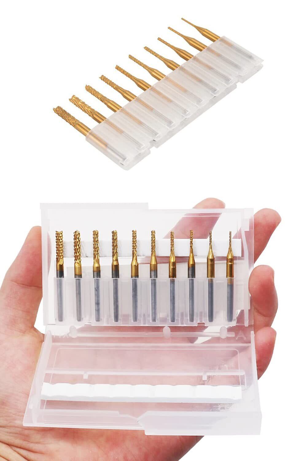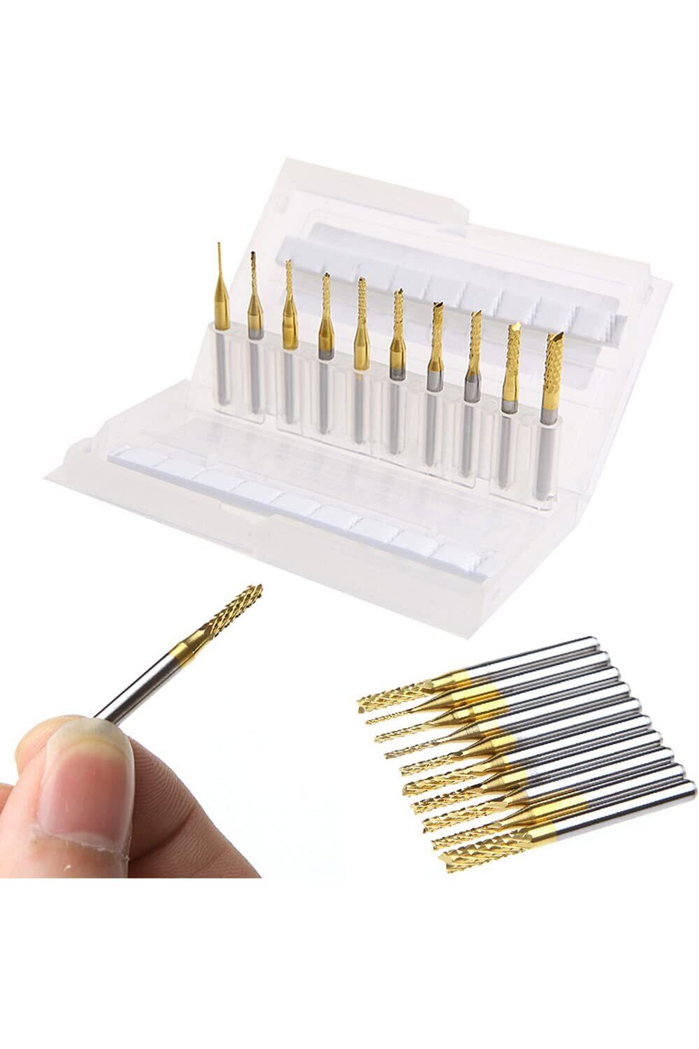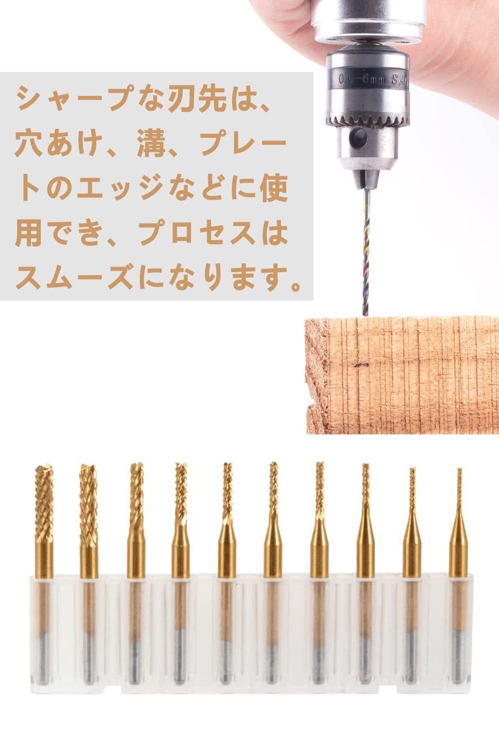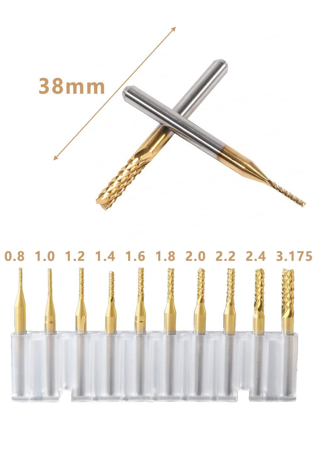 【セット内容】全長:38mm、切削エッジ直径:0.8mm、1.0mm、1.2mm、1.4mm、1.6mm、1.8mm、2.0mm、2.2mm、2.4mm、3.175mm。