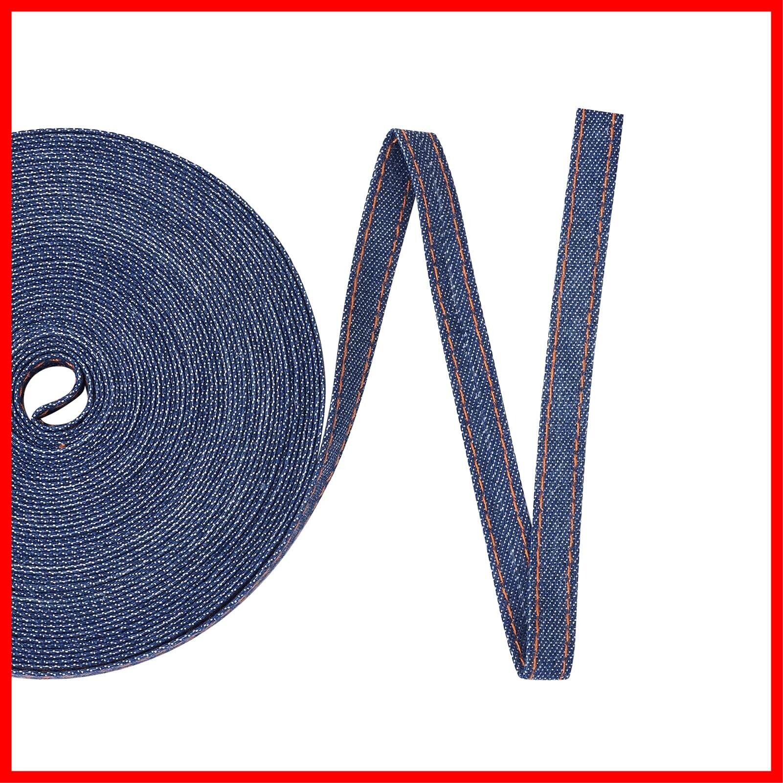 1巻入り 幅10mm マリンブルー ステッチデニムリボン 布生地 ジーンズ トリミング 手芸 縫製用 アクセサリーパーツ DIY ハンドメイド ヘアピン ヘアアクセサリー 服飾り パッチワーク 手作り素材 クラフト用品 約10m/ロール