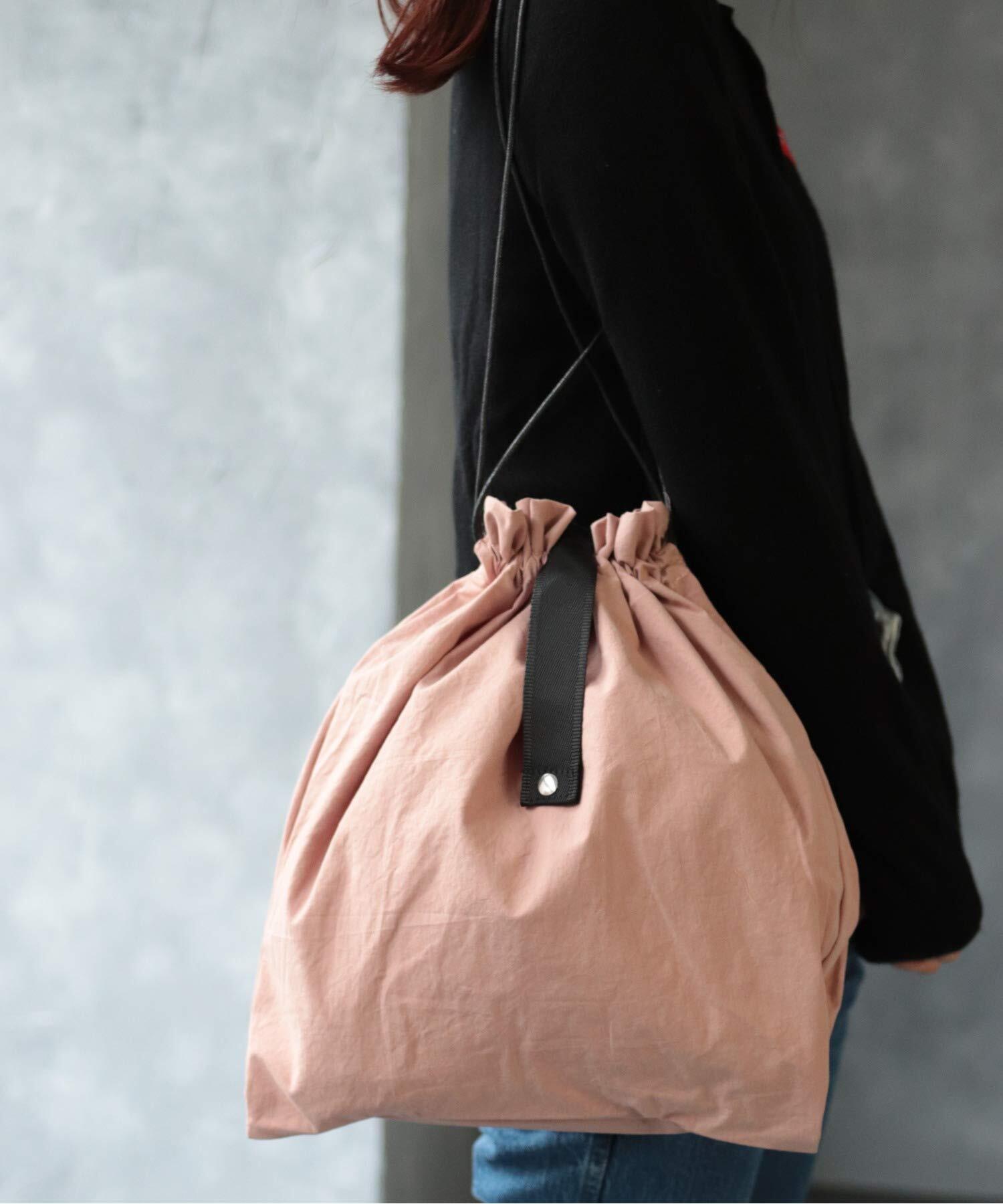 【グッシオ】巾着型 エコバッグ コンパクト収納 コンビニサイズ 綿麻素材 カジュアルコーデ 手提げ×肩掛け 2WAY仕様 折りたたみ 携帯便利 おしゃれ125012