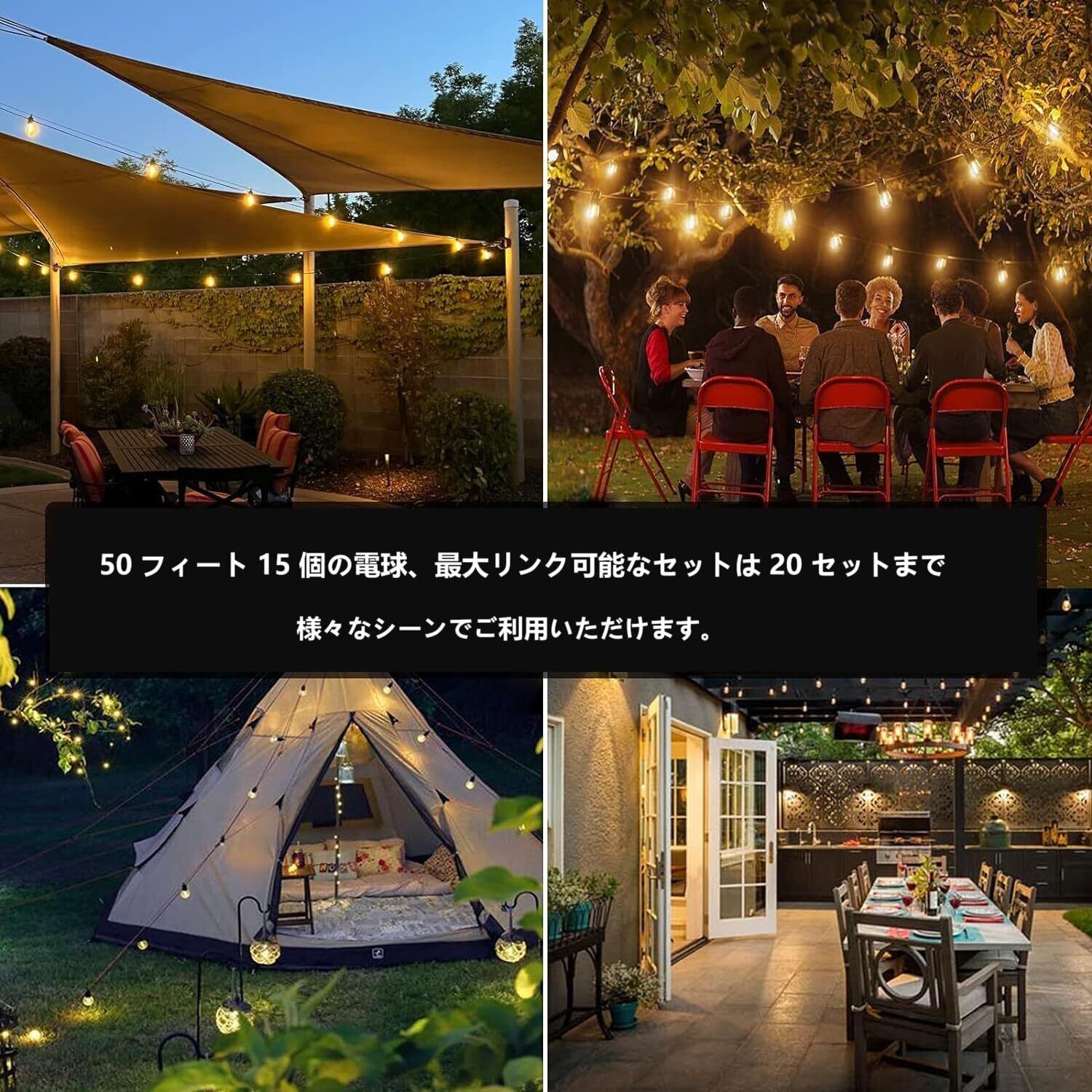 LEDストリングライト 15m 屋外 防雨型 一定の長さの延長コード付き 16個S14 電球ソケット 電球色 PC素材 破損しにくい 連結可能 屋内 屋外照明 パーティー電飾 ガーデンライト 誕生日 ハロウィン 結婚式 パーティー電飾 庭 商店街