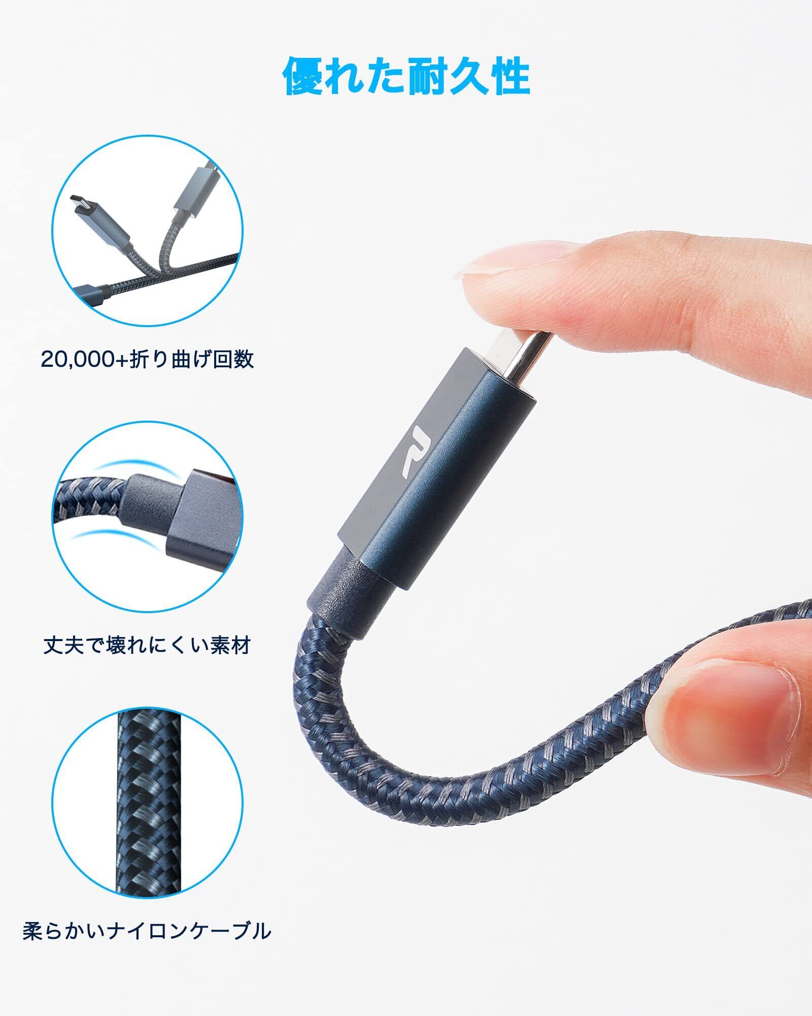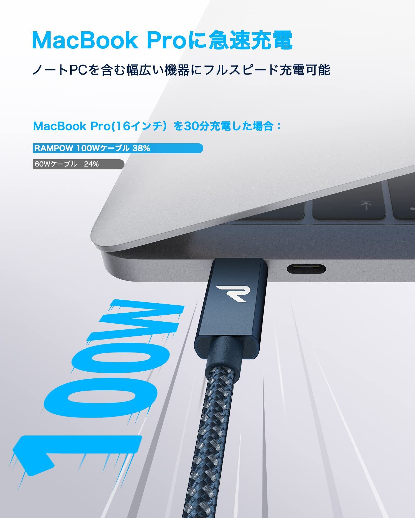 RAMPOW USB C ケーブル【100W PD対応/USB 3.2 Gen 2x2-20Gbpsデータ転送】PD3.0/QC3.0超高速充電 4K/60Hz 映像出力対応 超高耐久 iPhone 16/16e 充電ケーブル/iPhone 15 充電ケーブル MacBook Pro/iPad Pro/Google Pixel/Galaxy等タイプC対応 在宅勤務/出張支援 ネイビー 1M | hananoki