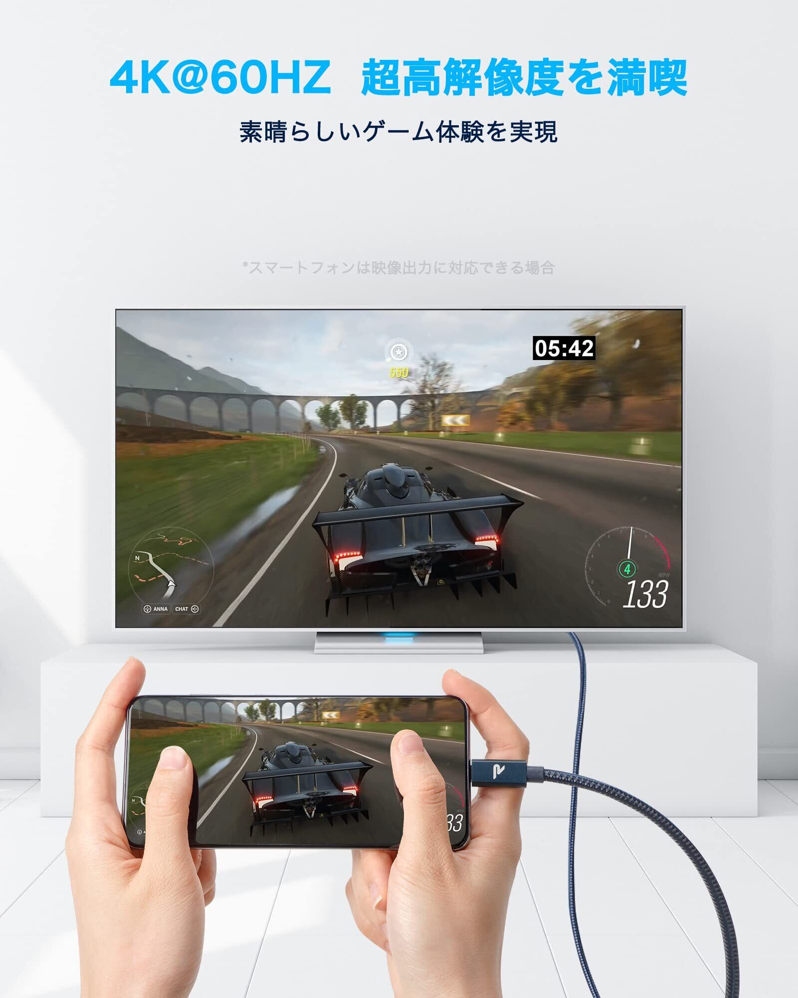 【20Gbps超高速データ転送】従来のUSB2.0(480Mbps)に比べて最大14倍の転送速度を実現、USB 3.2 Gen 2x2規格に対応しているタイプc ケーブルです。20Gbpsの超高速データ転送で、音楽、映画、写真、HD動画をわずか2.5秒以内に転送できます。また、映像出力可能なUSB-Cポートを搭載したスマートフォン・タブレット・ラップトップ本体を映像入力可能なUSB-Cポートを持つモニターに接続することにより、第二の画面で4K画像が見れます。小さい画面から解放します!
