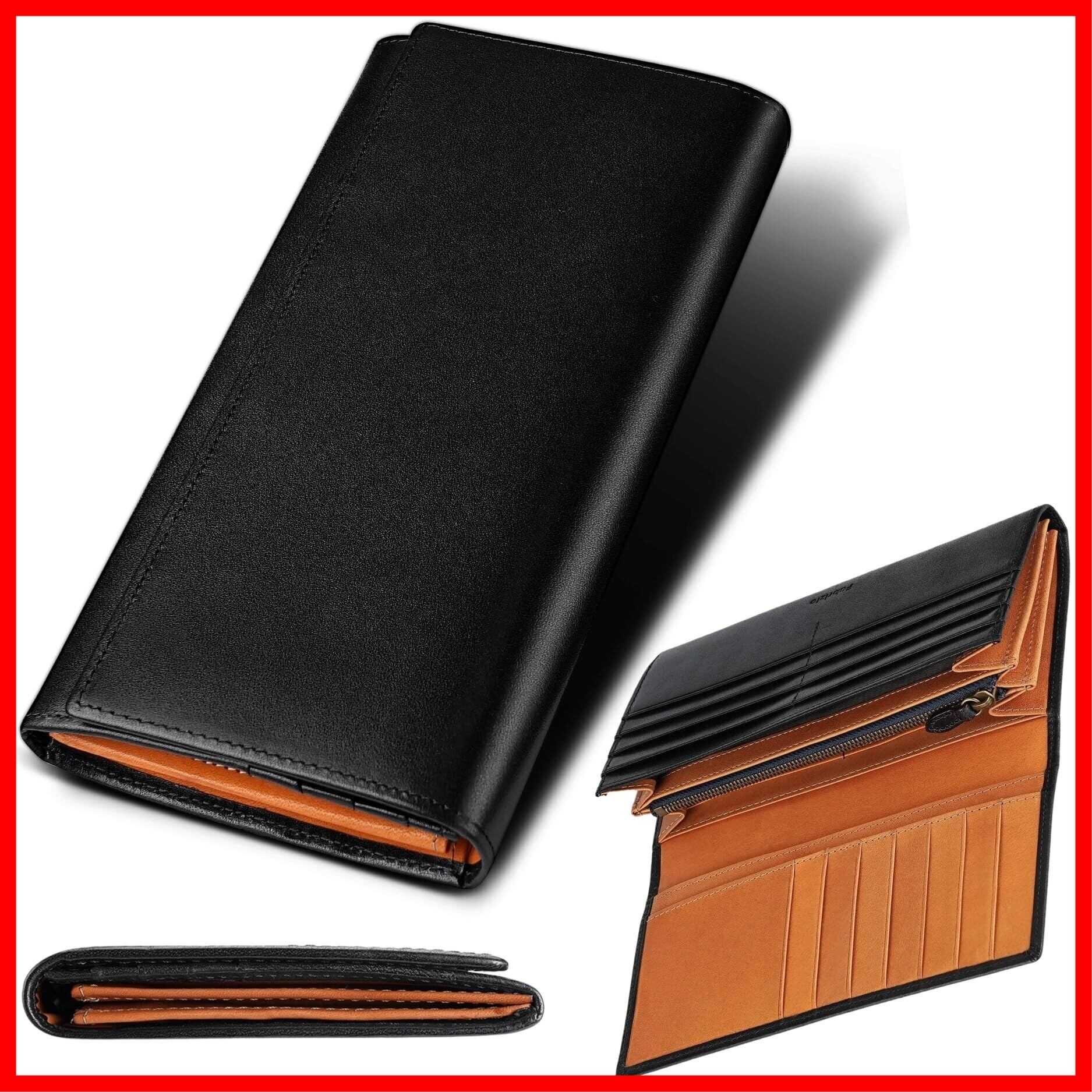 [ファブリツィオ] 財布 メンズ レディース 長財布 2つ折り マチ付き 小銭入れ 薄い 大容量 カード21枚 使いやすい イタリアン レザー 一流の革職人が作る 本革 YKKファスナー (ブラック)
