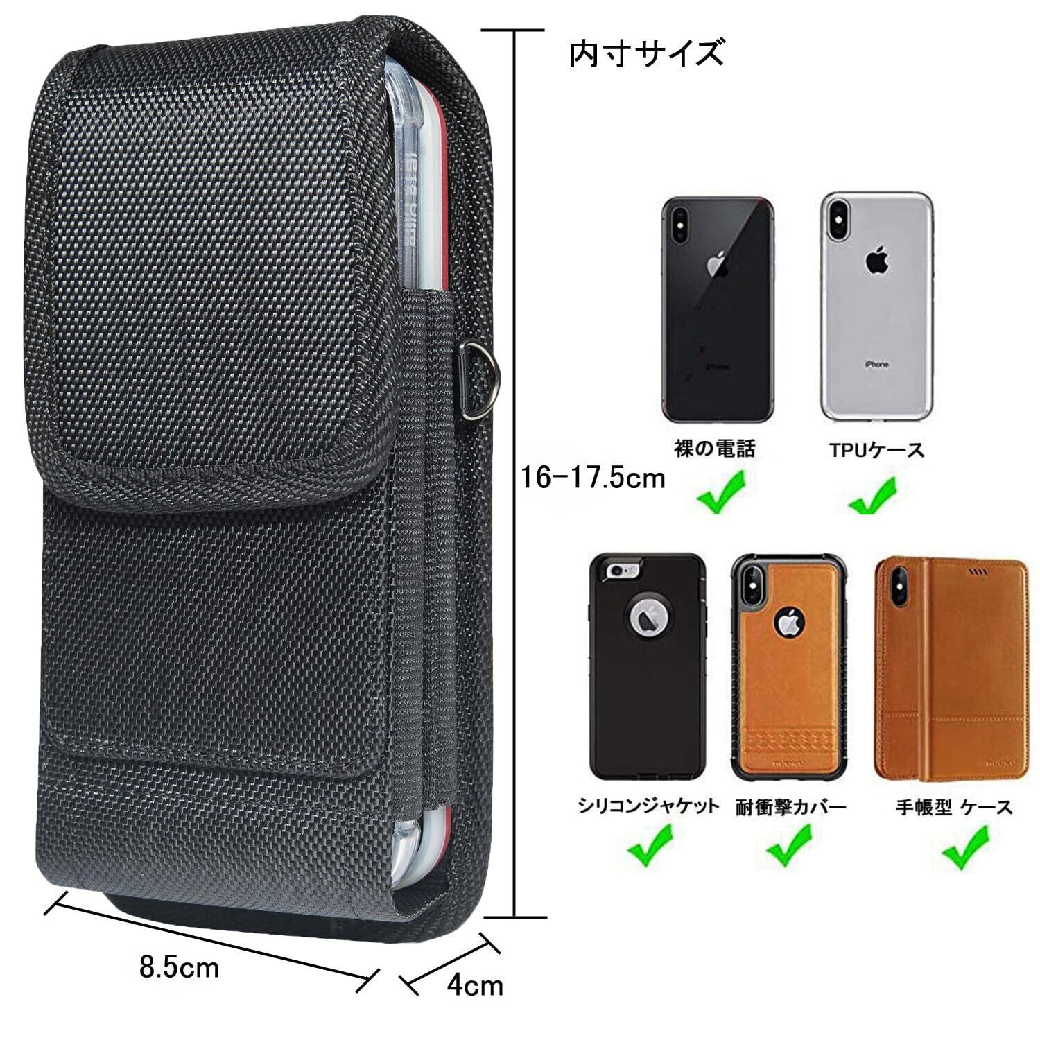 ベルトケース内寸サイズ:高160-175mm×横85mm×厚み20mm, 重量: 約130g。iphone 15 plus/14 plus/15 Pro Max//14 Pro Max/13 Pro Max/12 Pro Max,iPhone 6/6s/7/8/ Plus,Galaxy S24 Ultra/S23 Ultra/S22 Ultra/S21 Ultra/S24+/S23+/S22+/S21 Plus/A53/A33/A13/A23/A03s/M13, 5.5-6.9インチまでのスマホ対応