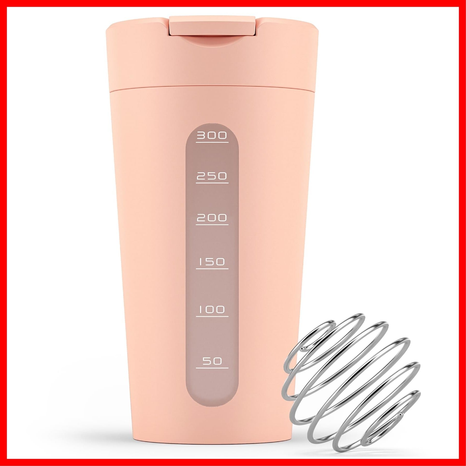 プロテインシェイカー 小さめ 400ml スリム コンパクト 食洗機対応(耐熱温度100度) おしゃれ かわいい 漏れない ピンク 日本ブランド 女性向け (ピンク)