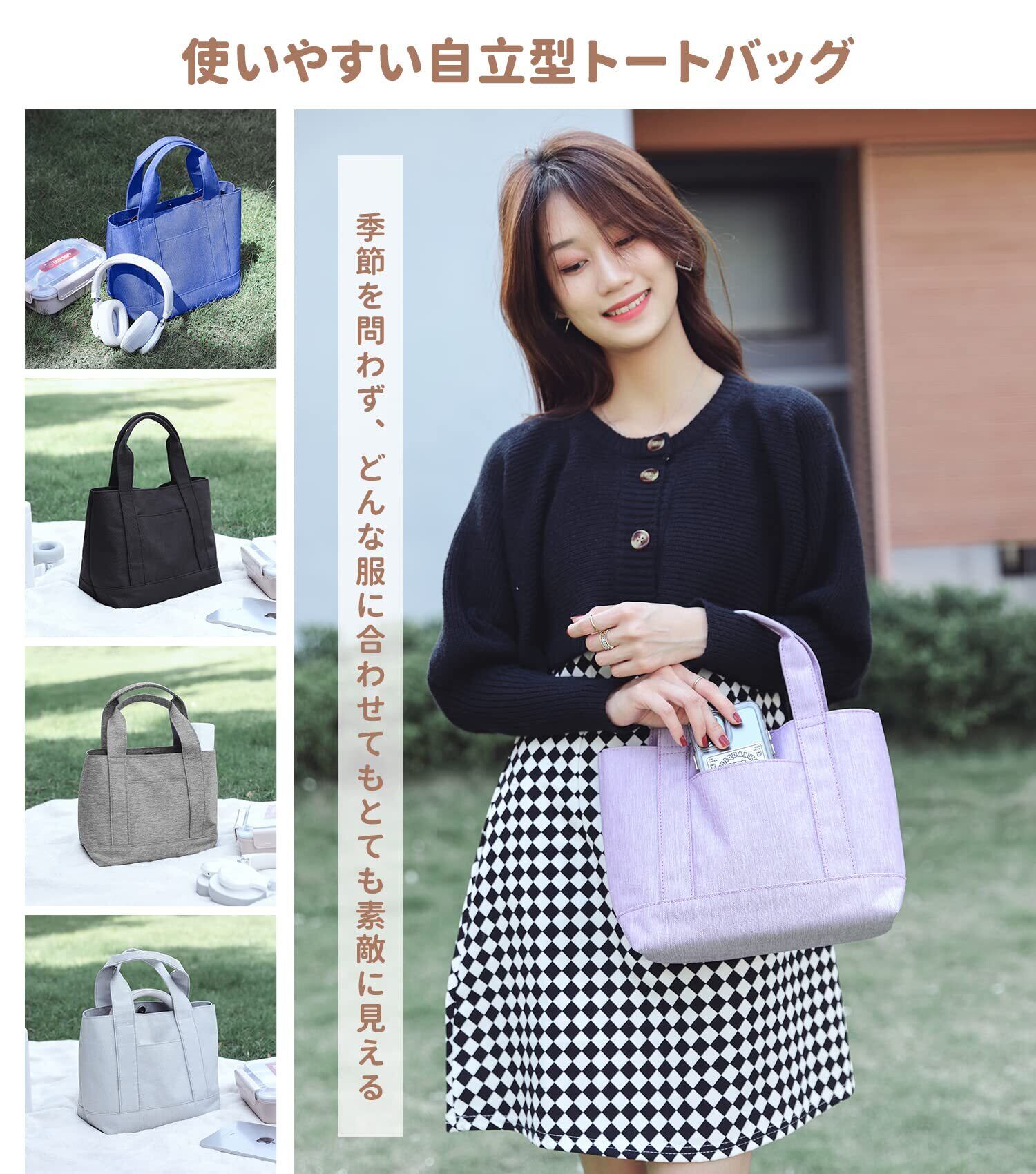 [ENLAN] トートバッグ ミニトート 軽量 小さめ ランチバッグ おしゃれ ハンドバッグ レディース 仕切り 散歩 買い物 通勤 メンズ 男女兼用 自立 ミニバッグ