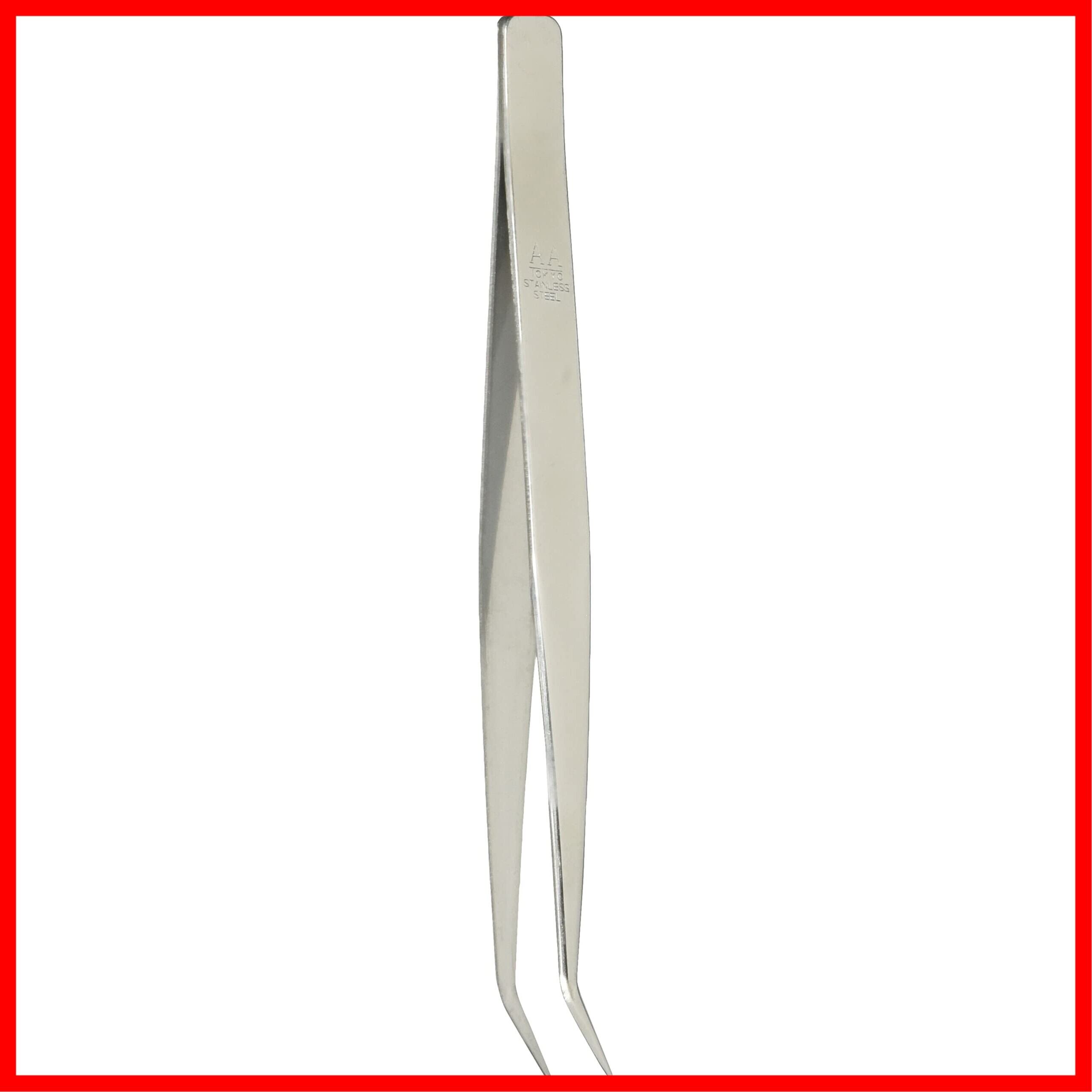 細かいものをピックアップする作業などに適した先が尖ったのピンセットです。先端が曲がっているので、平面におかれたものを拾いやすい形状になっています。