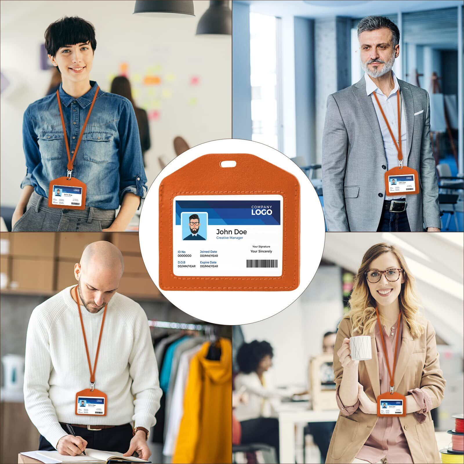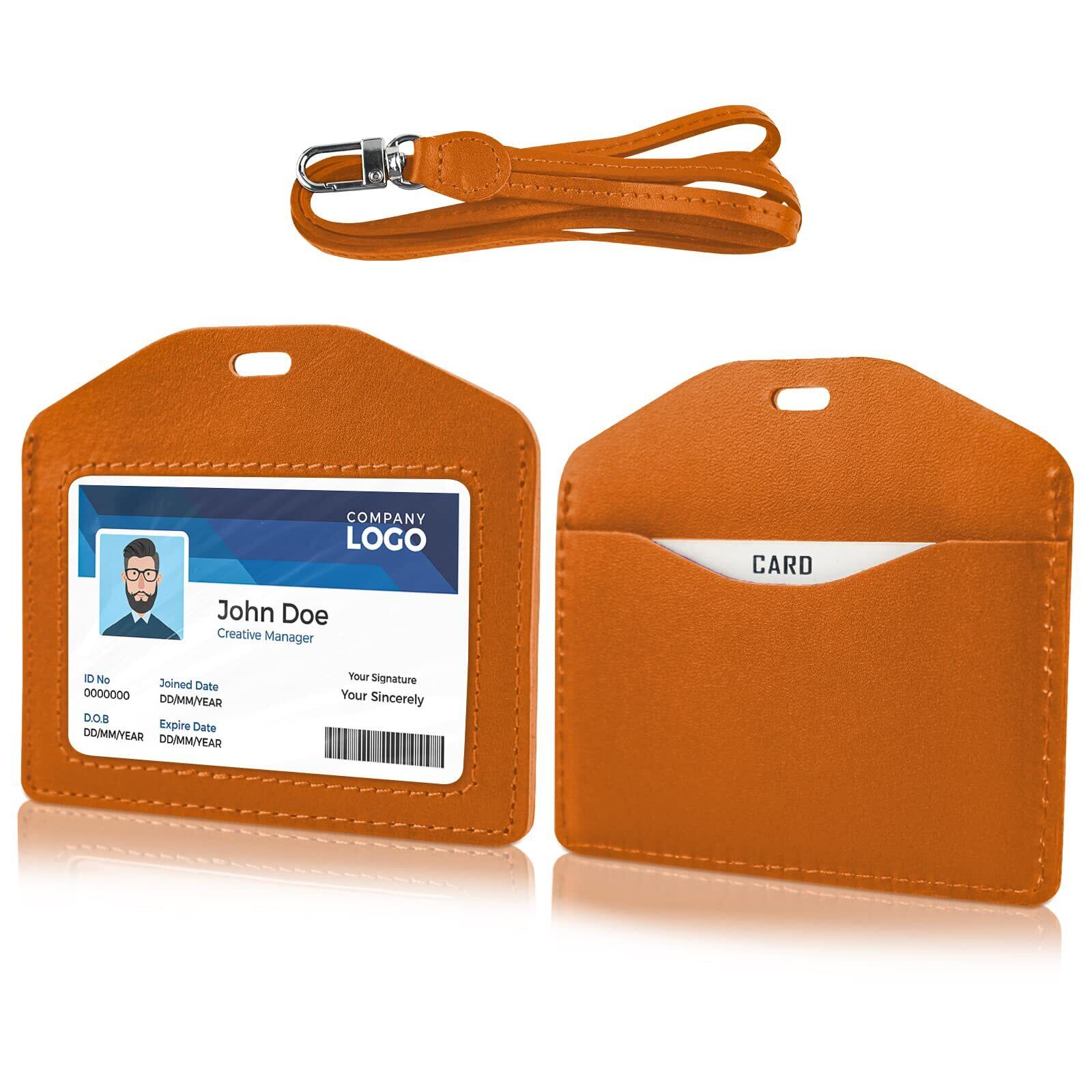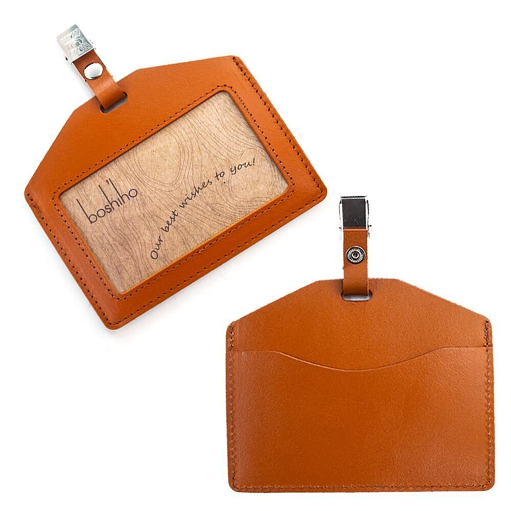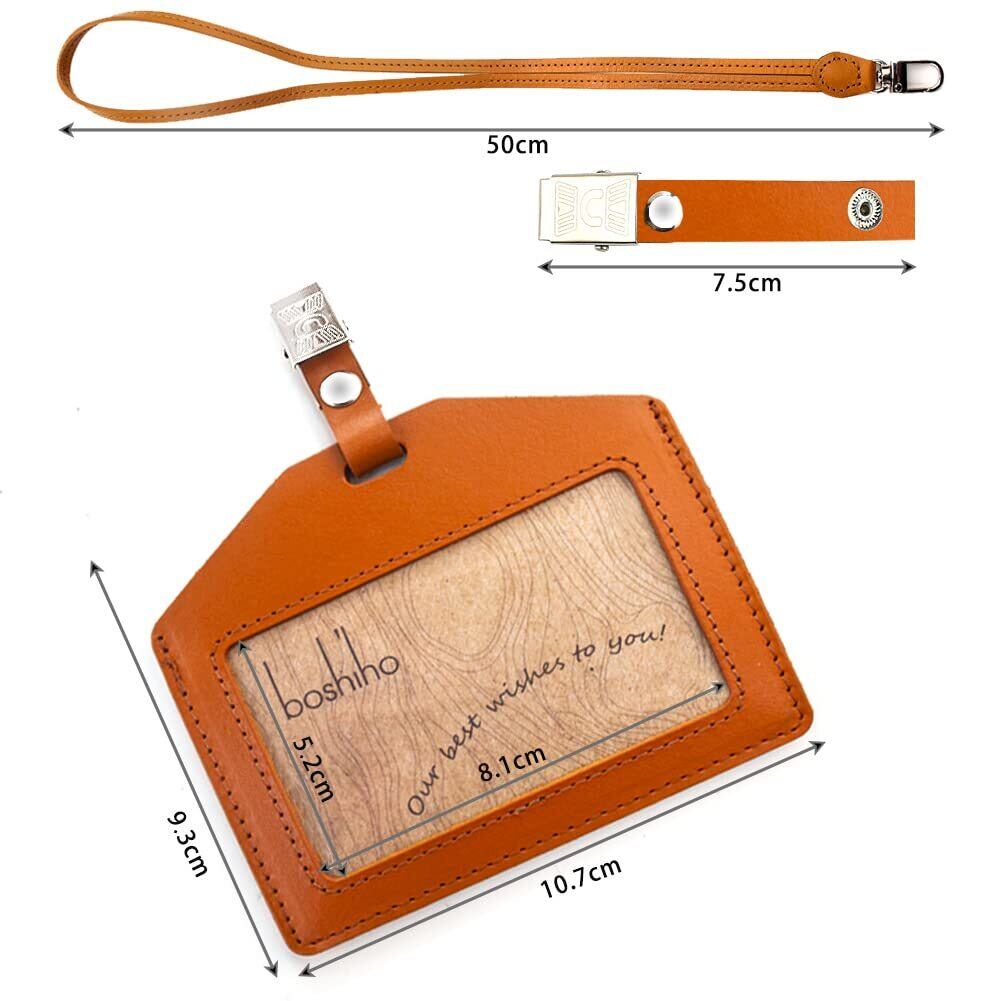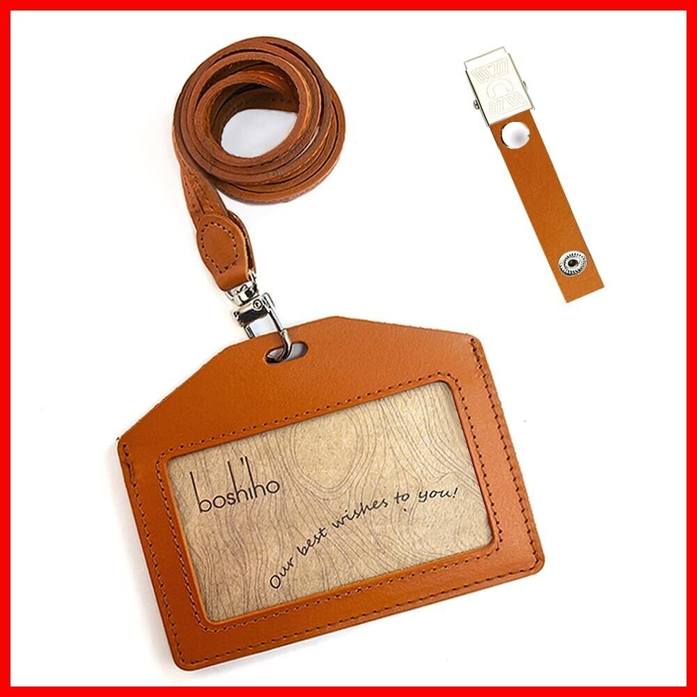 boshiho IDカードホルダー 本革 クリップ付き 横型 パスケース メンズ ネックストラップ 首掛け ネームホルダー 両面用 通学 通勤
