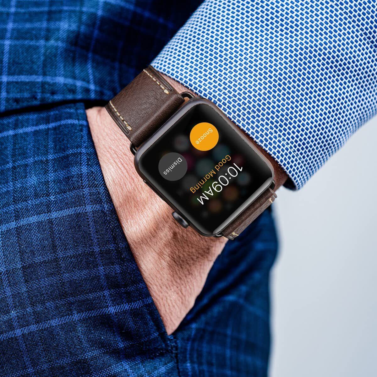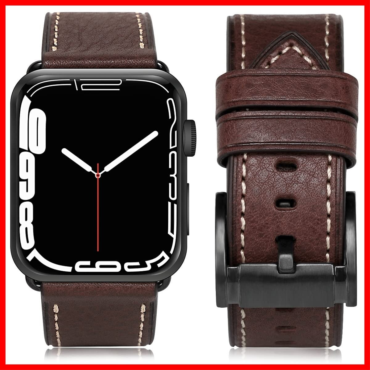 [ANGKMA] Apple Watch 用バンド49mm46mm 45mm 44mm 42mm 本革 交換ベルト Apple Watchシリーズ 10/9/8/7/6/5/4/3/2/1/Ultra対応 (42mm44mm45mm46mm49mm, コーヒーストラップ/ブラックバックル) | hananoki