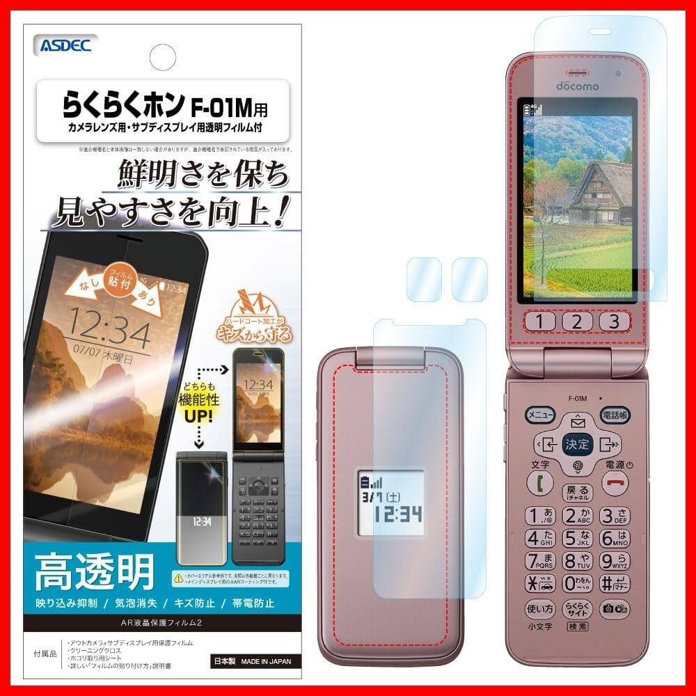 docomo らくらくホン F-01M フィルム 【サブディスプレイ保護フィルム付き】 AR保護フィルム2・日本製・気泡消失・反射映り込み抑制・キズ防止・帯電防止・光沢 グレア・表面硬度3H AR-F01M (らくらくホン F-01M / 光沢フィルム)