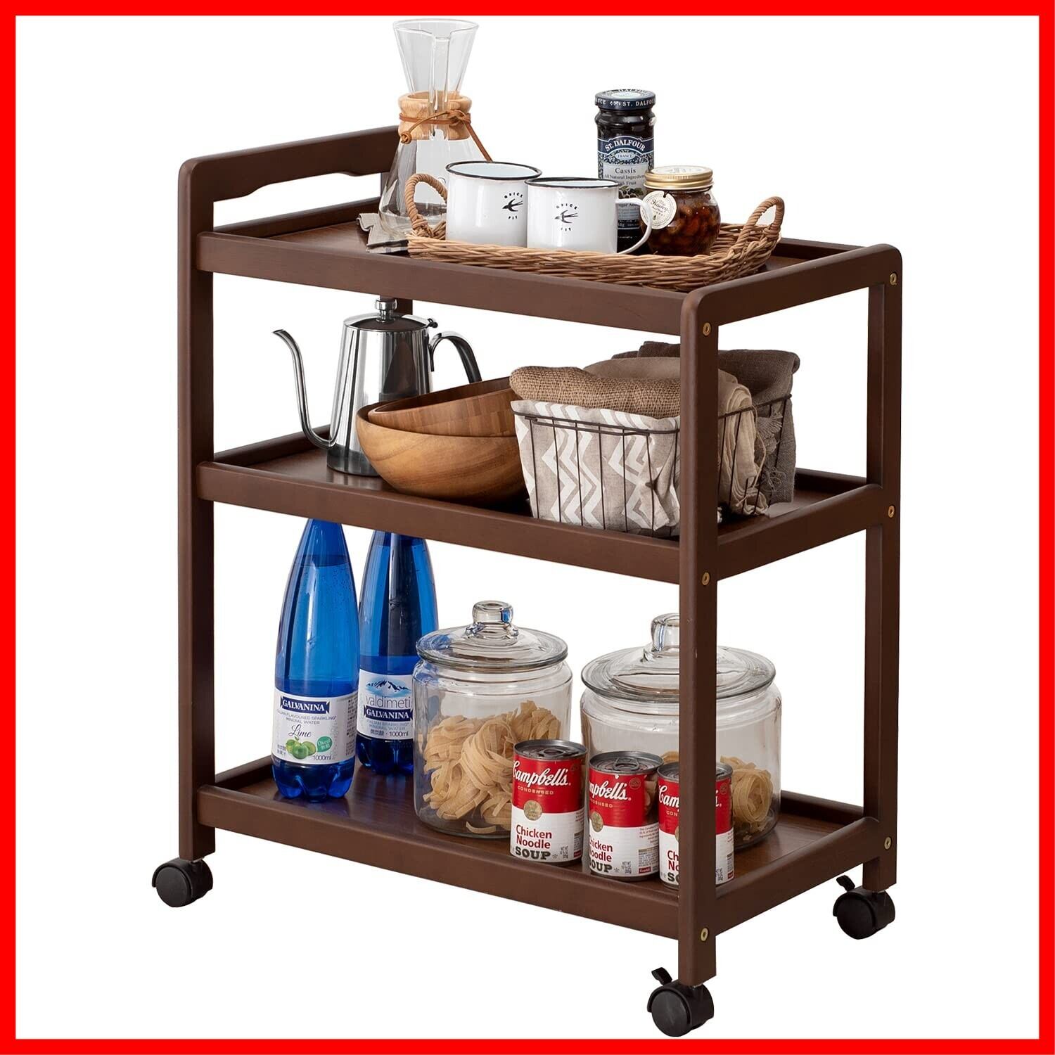 【安心の商品耐荷重15kg】:3段棚は各棚約5kgまで物を載せられ、スリムな見た目なのに大容量。ごちゃつく台所・ダイニング周りをキレイに整理・整頓できます。