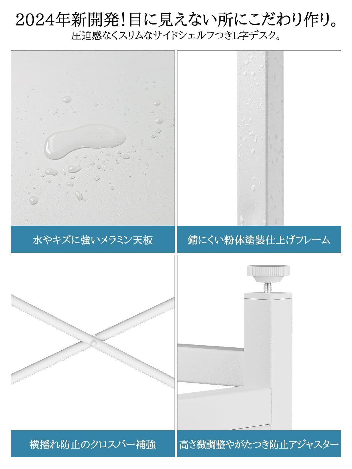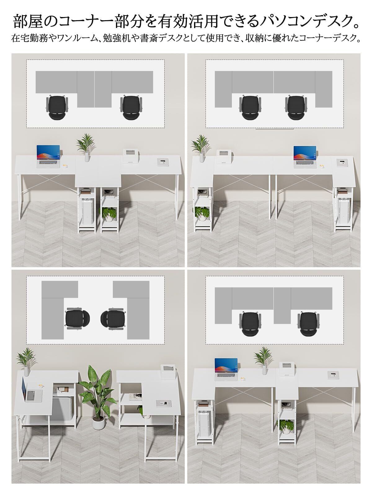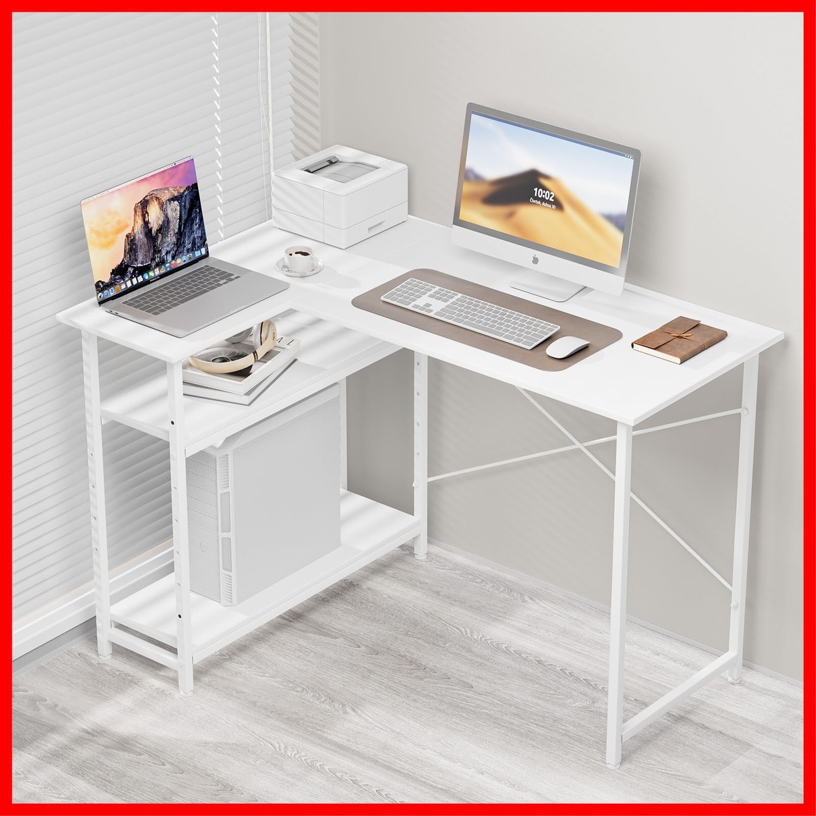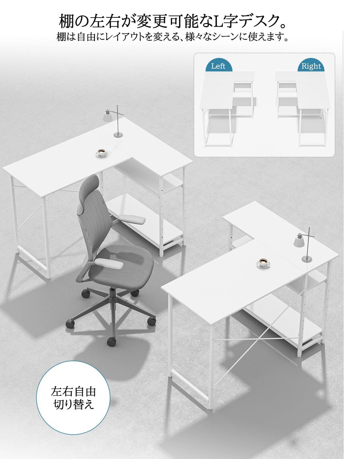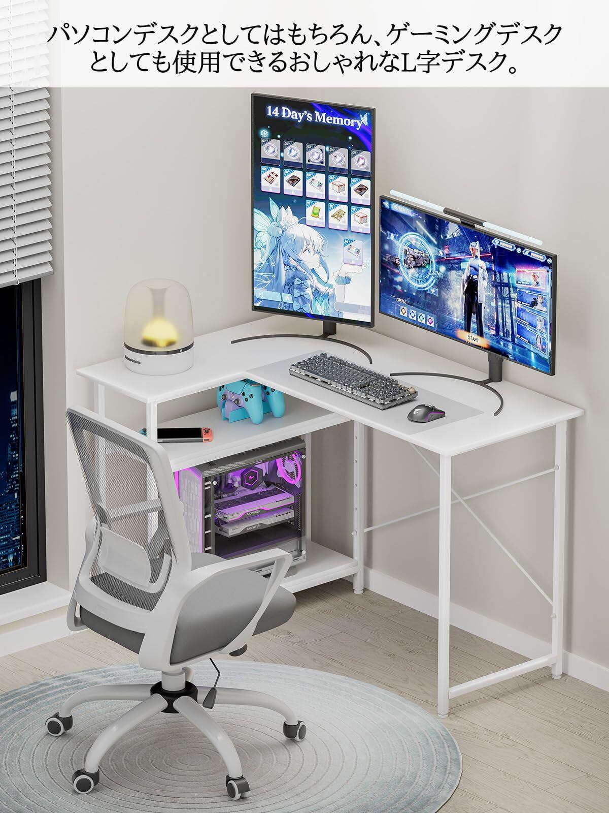 L字デスク パソコンデスク 幅110×奥行48×高さ75cm 左右入替え PCデスク l字型 コーナーデスク ゲーミングデスク 収納ラック付き 棚板高さ調節可能 テレワーク 在宅勤務 学習机 省スペース ワークデスク 作業机 シンプル オフィス (ホワイト)