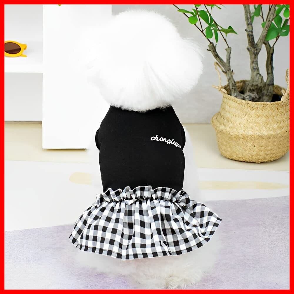 【可愛い】単色のTシャツ、とチェック柄の裾、おしゃれ なワンピース設計して、毎日一緒に生活する愛犬が自宅でも散歩中でも、外出先でもこんなオシャレな服を着せると、注目を浴びるアイテムに間違いなし。