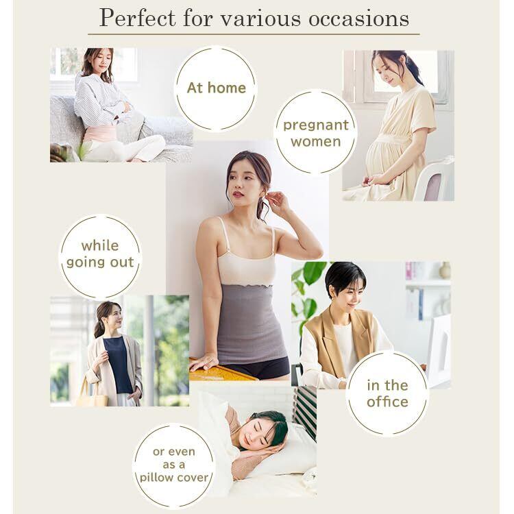 【柔らかく締め付け感ゼロ】よく伸びてお腹を締め付ける事がなく妊婦さんにおすすめ。冷えがたまりやすい腰回りもポカポカして冷え対策にもなります。妊娠後期にウエストが1メートルになった妊婦さんでも、柔らかく包みこんでくれる着心地に満足いただけます。薄くて軽く、よく伸びるから、マタニティーインナーとしても人気です。伸縮性がかなりあるので、ウエストが約50センチから100センチまで対応しています。